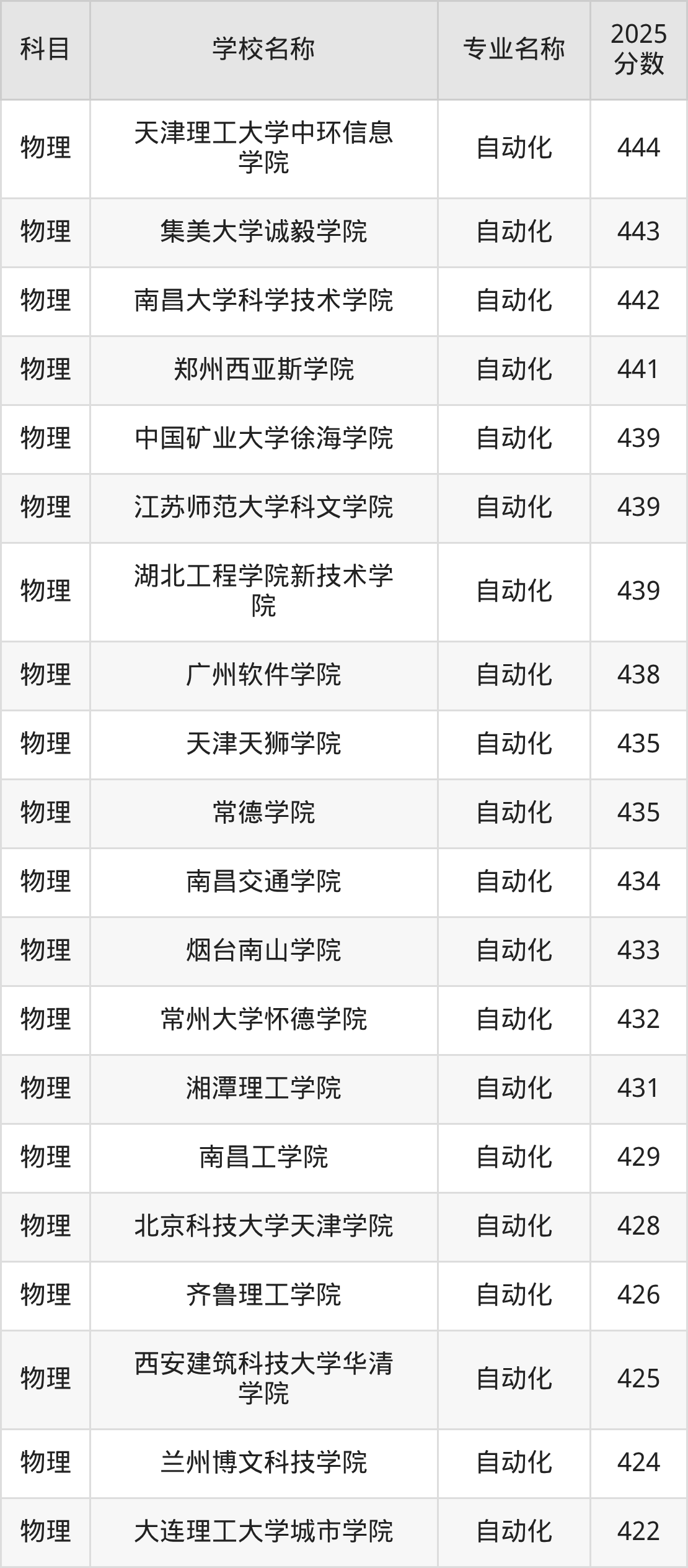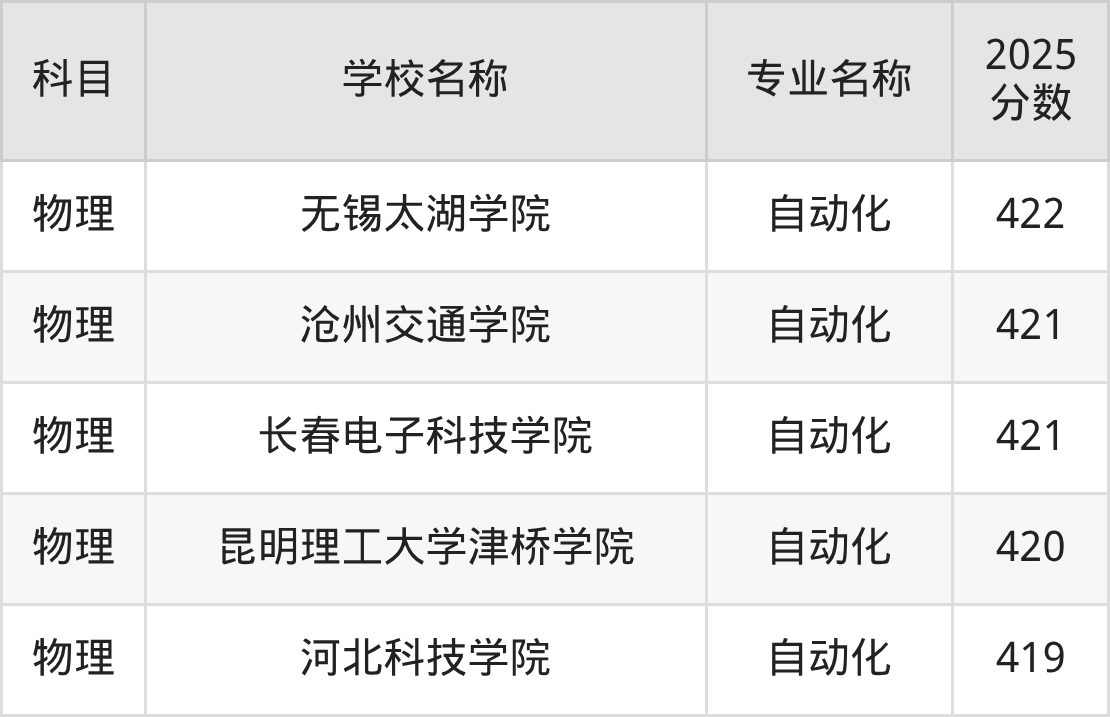 | 学校名称 | 专业名称 | 2025 分数 |