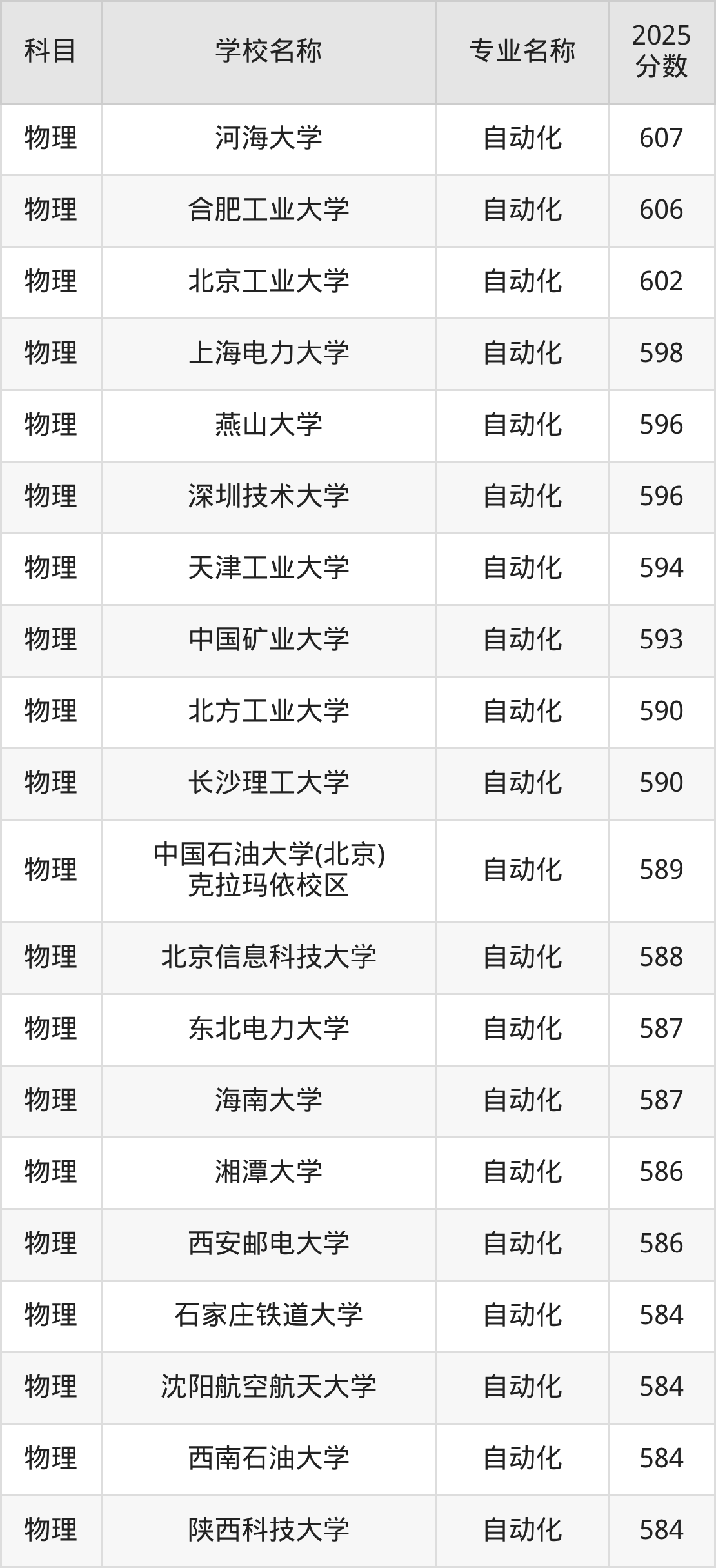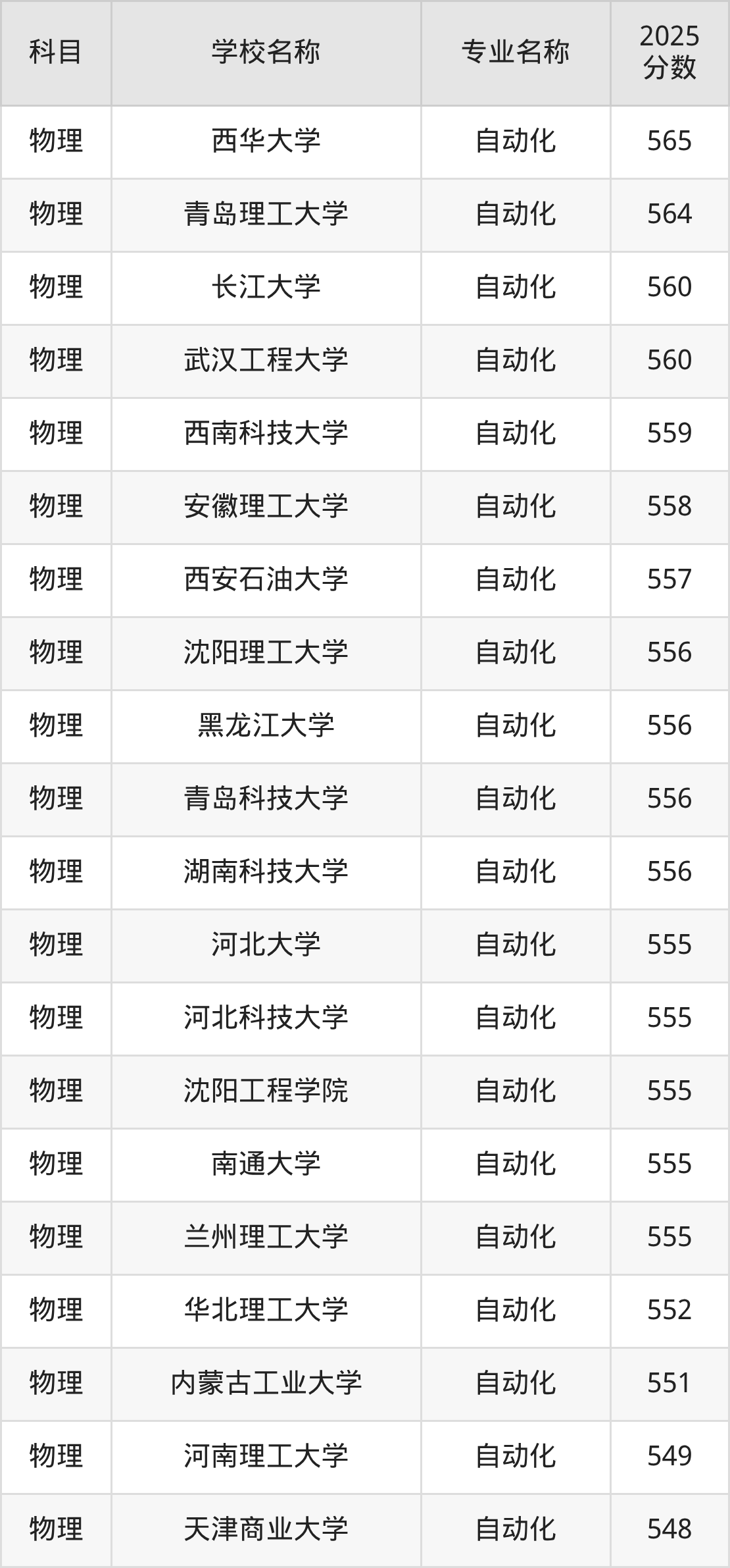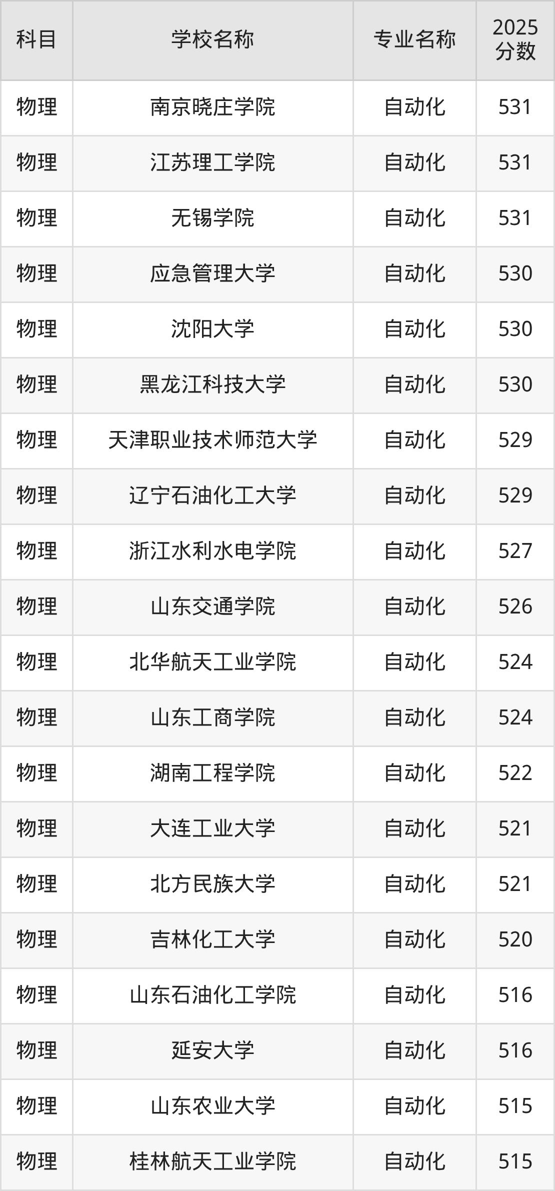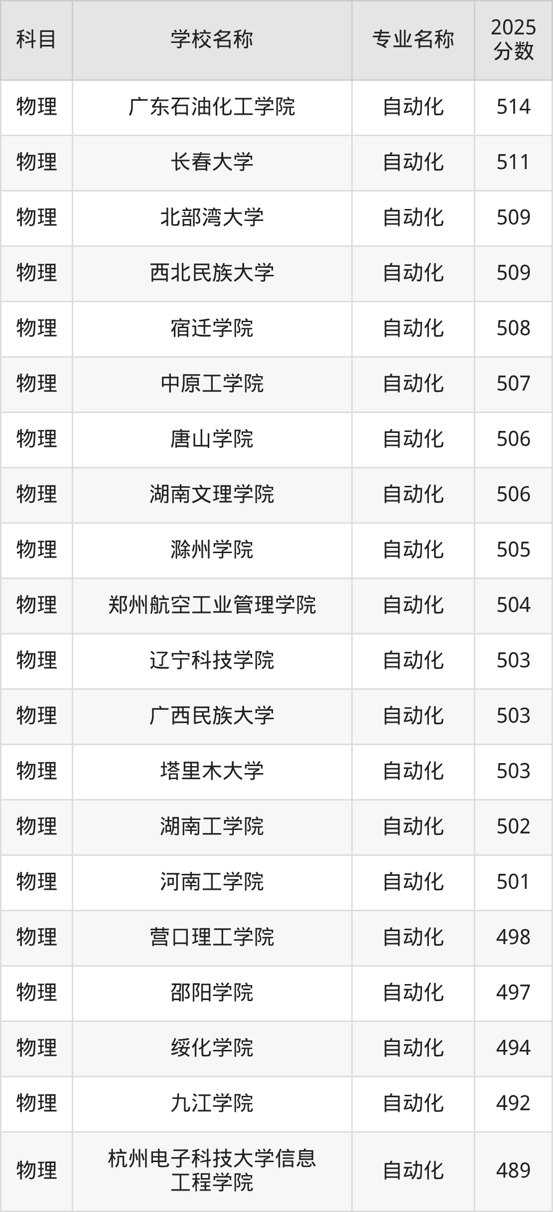 下文将为大家展示山西省大学自动化专业2025年在山西高考的最低录取分数线!