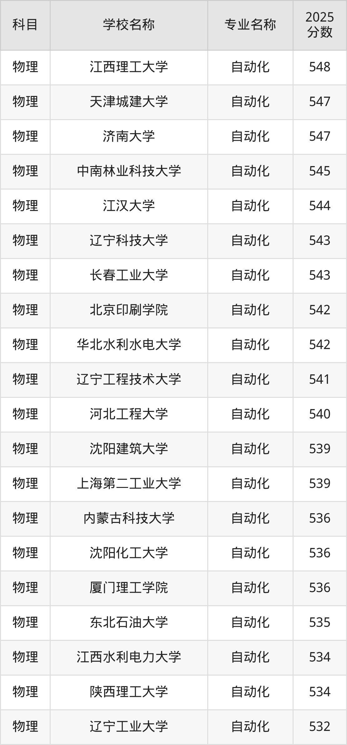 | 山西大学 | 自动化 | 542 |