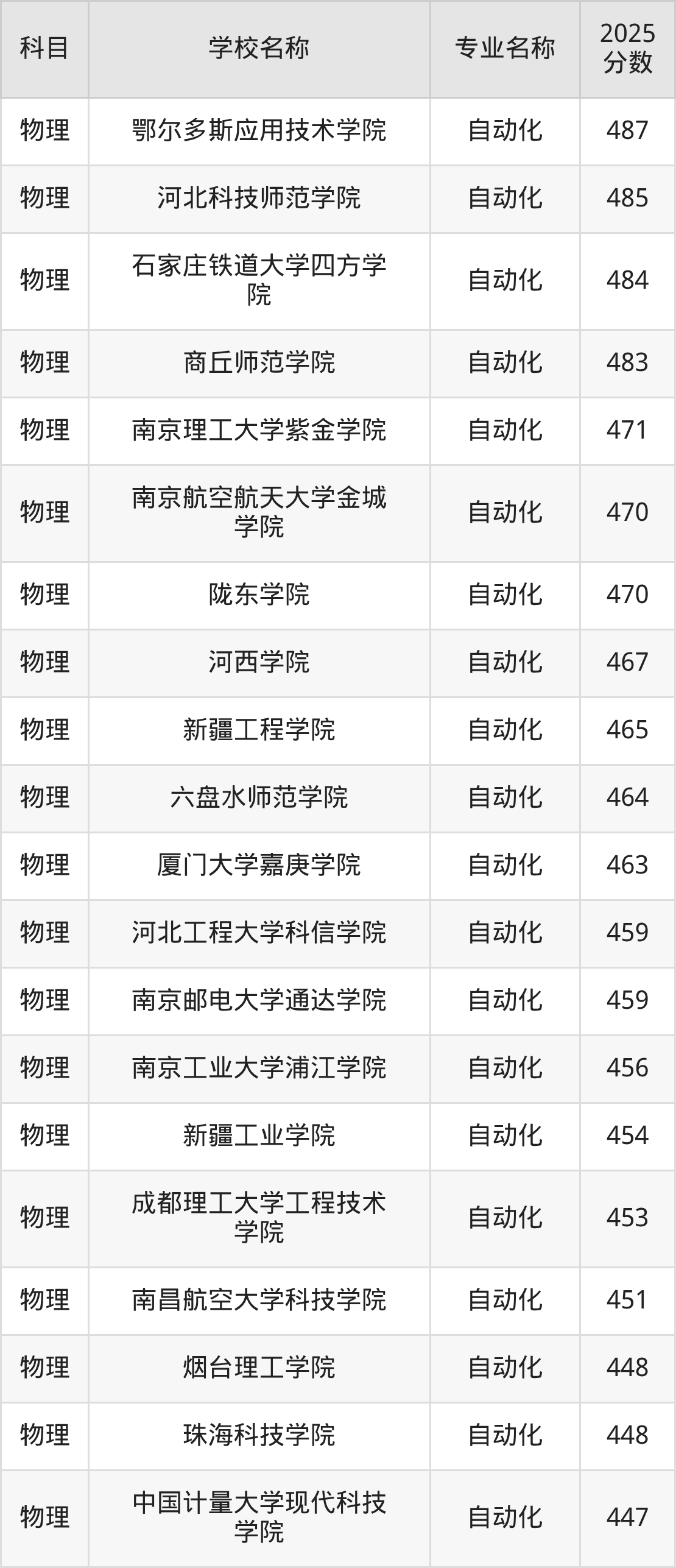 | 山西工学院 | 自动化 | 468 |