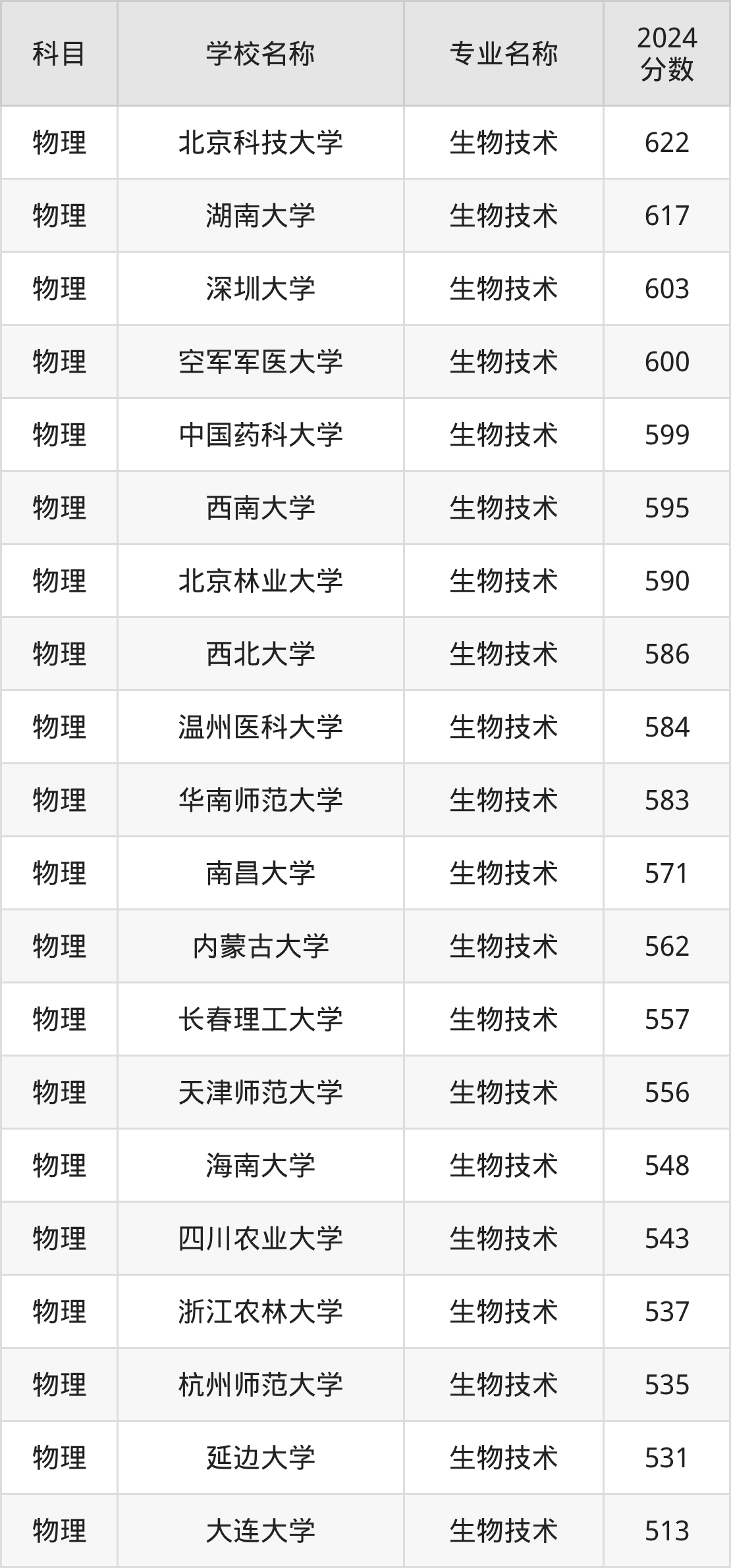 在直接以“生物技术”的名称招生的黑龙江省大学中,东北林业大学的分数线最高、排名第一名,在物理组的最低分是535分,全省排名前23987位的高考生才有较大机会被录取。