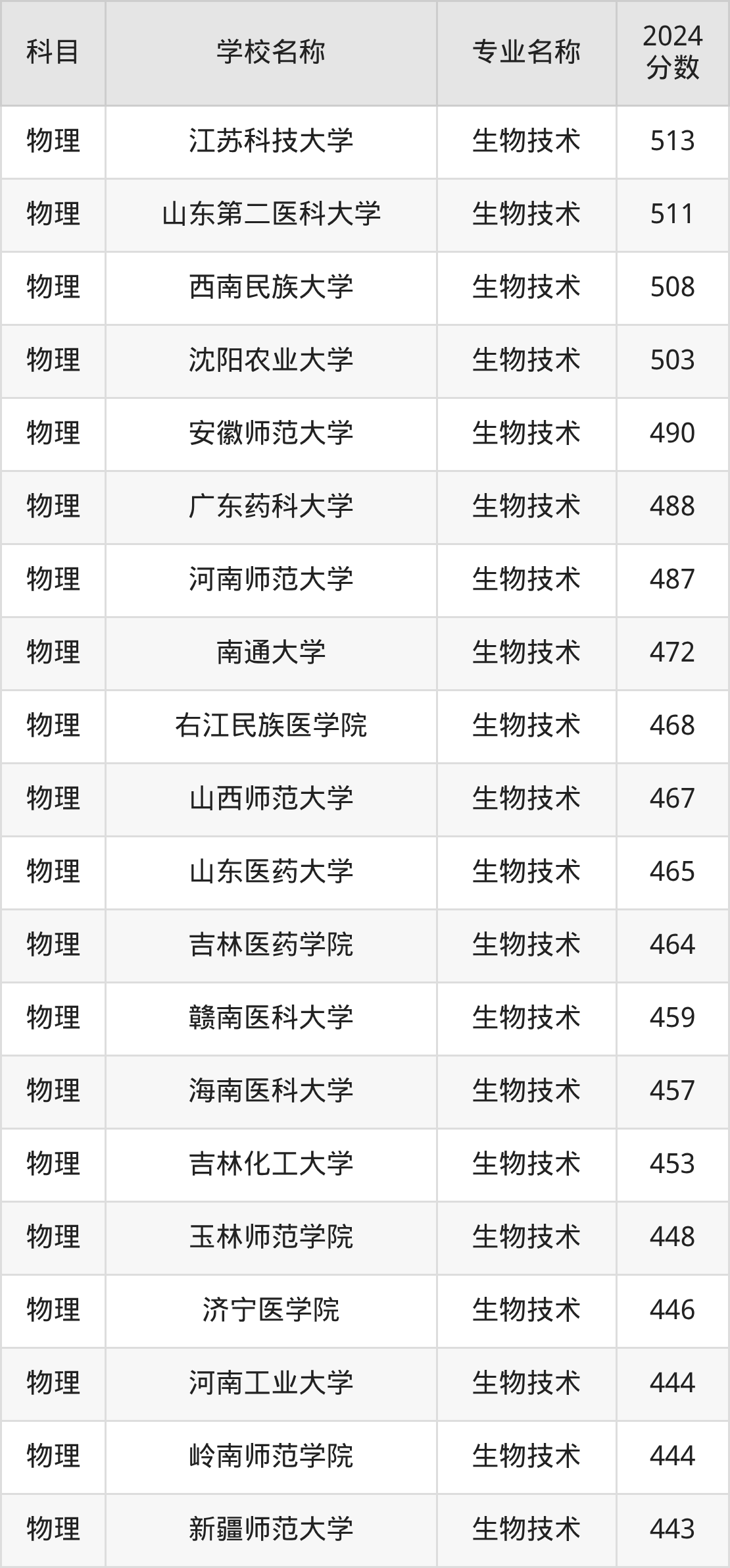 圆梦小编根据黑龙江2024年高考物理组专业分,将开设了生物技术专业且位于黑龙江省内的大学按照“录取分”从高到低排序,得出了以上榜单。
