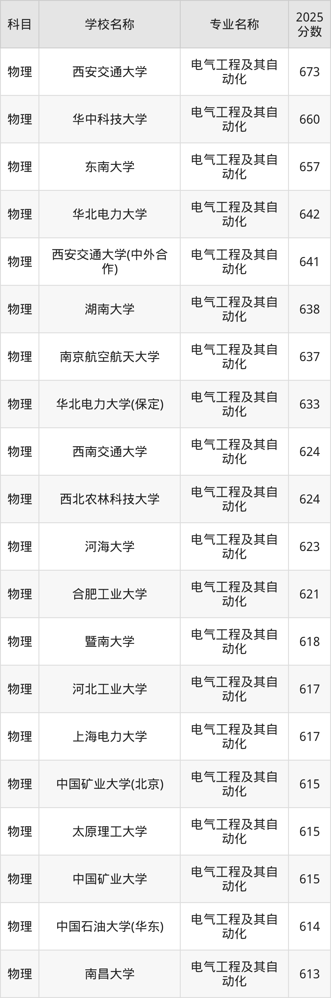 | 重庆大学 | 电气工程及其自 动化 | 641 |