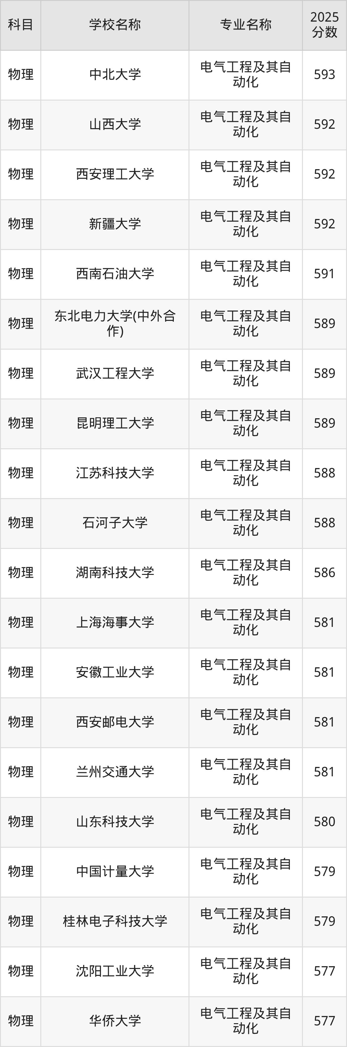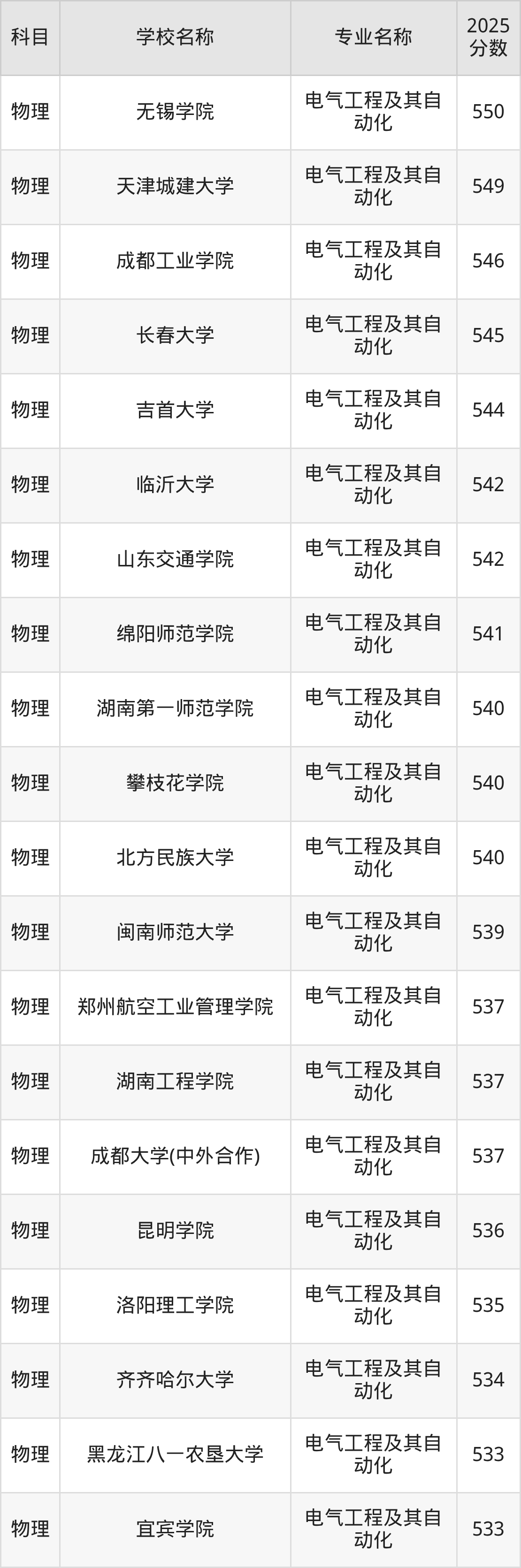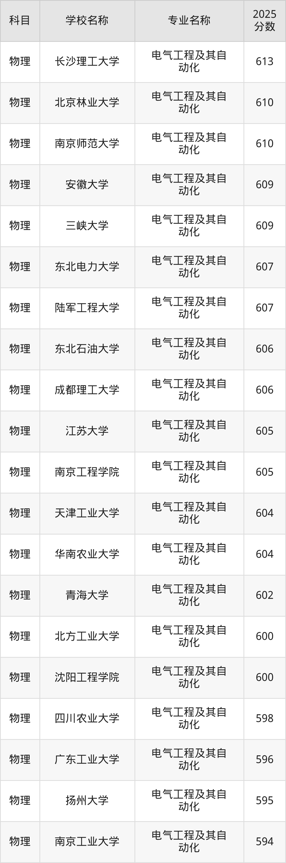 重庆高考物理组:电气工程及其自动化专业的最低分是425分~641分