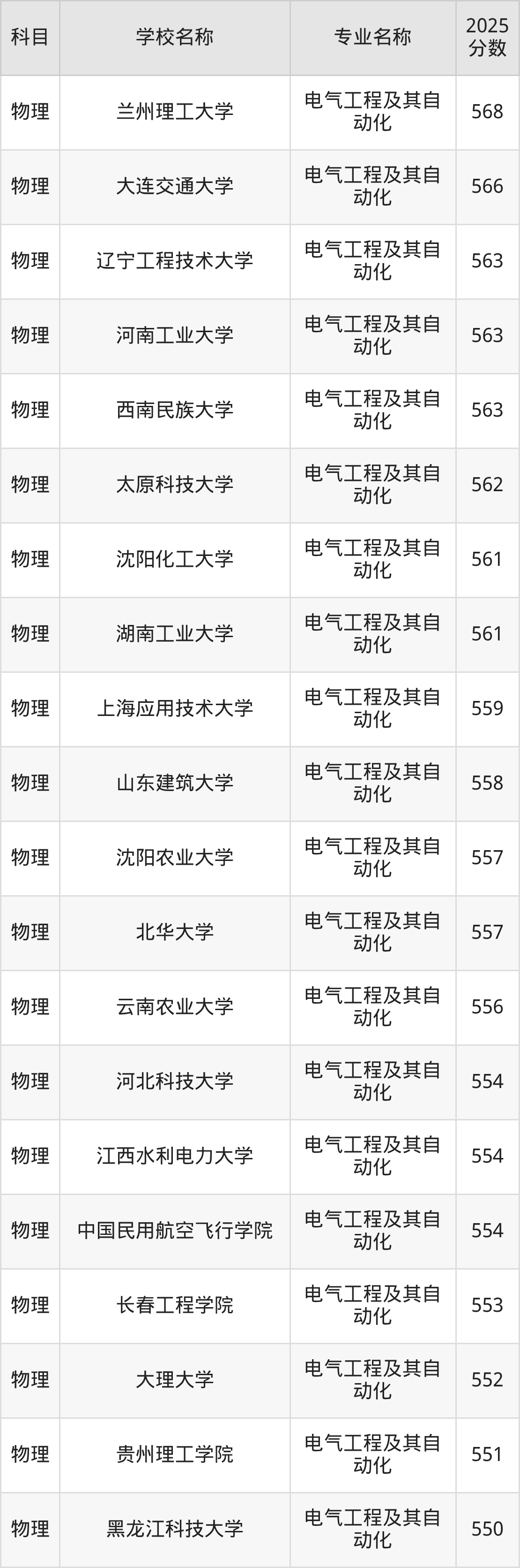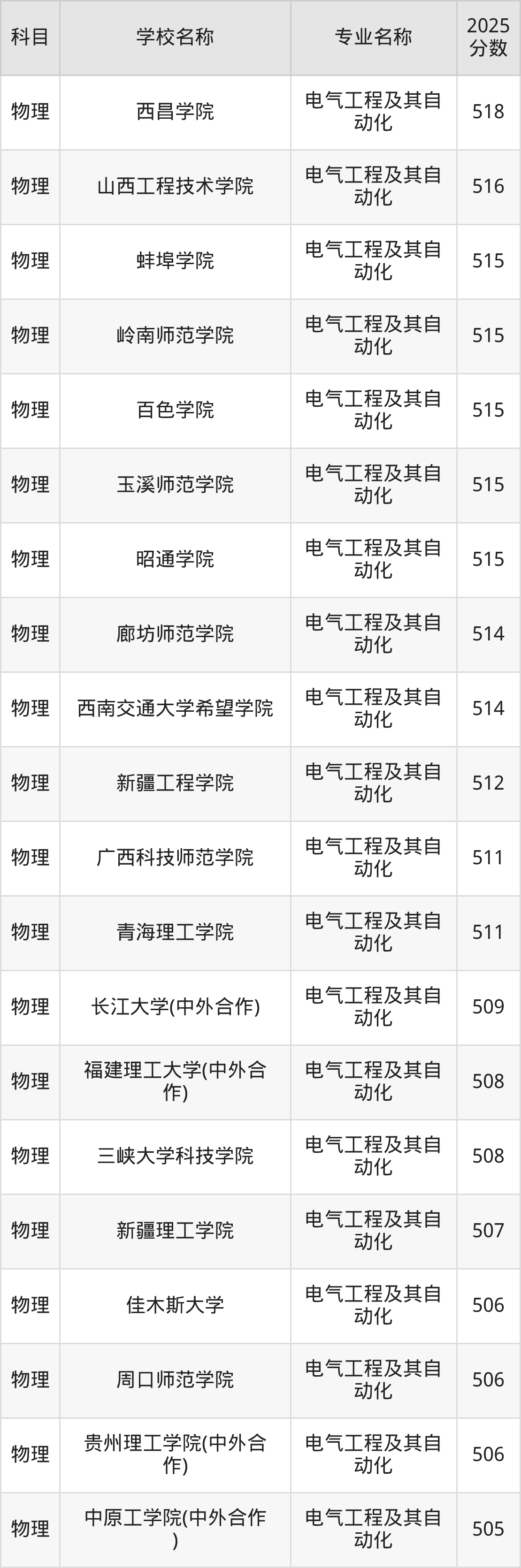 下文将为大家展示重庆市大学电气工程及其自动化专业2025年在重庆高考的最低录取分数线!