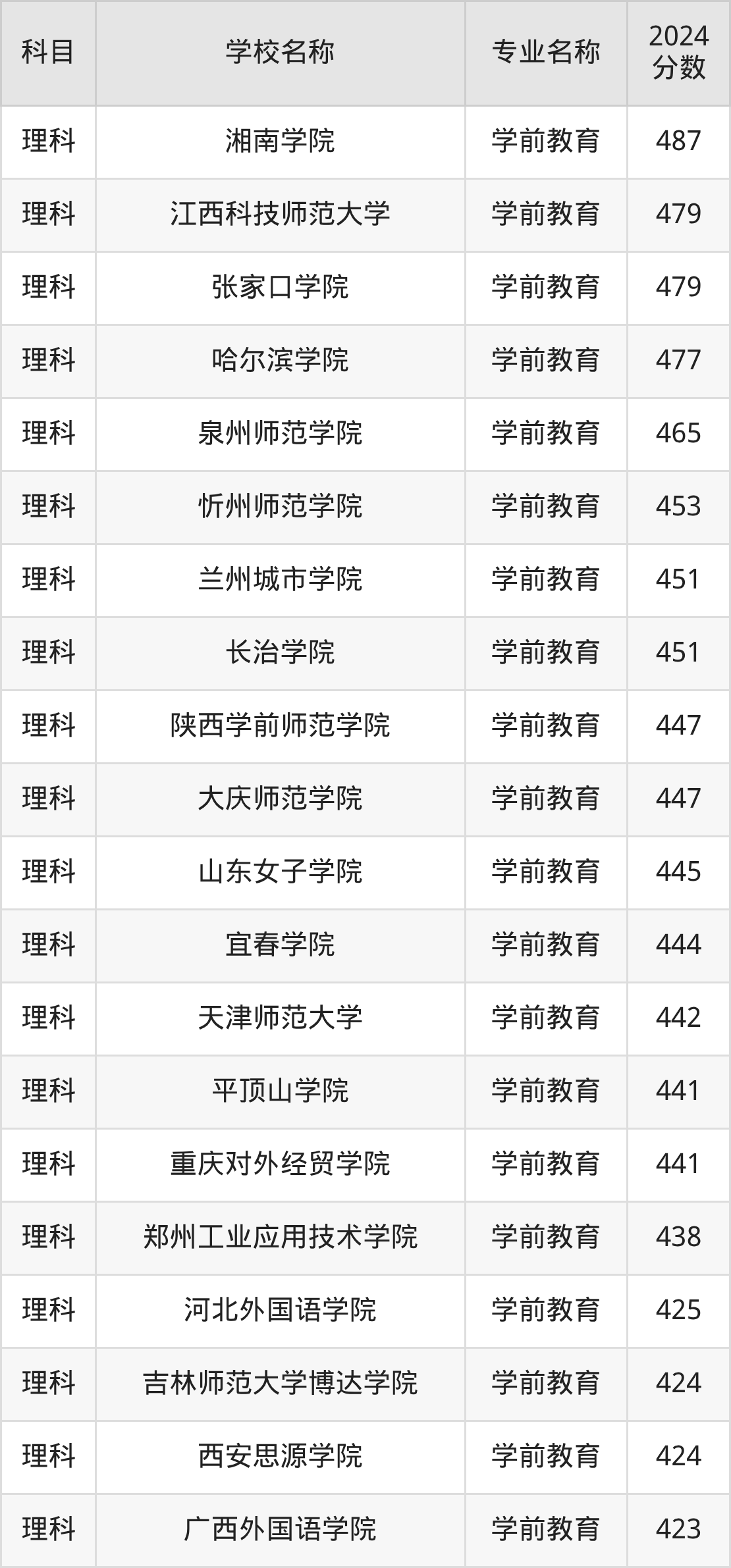 | 昆明文理学院 | 学前教育(师范 类) | 480 |