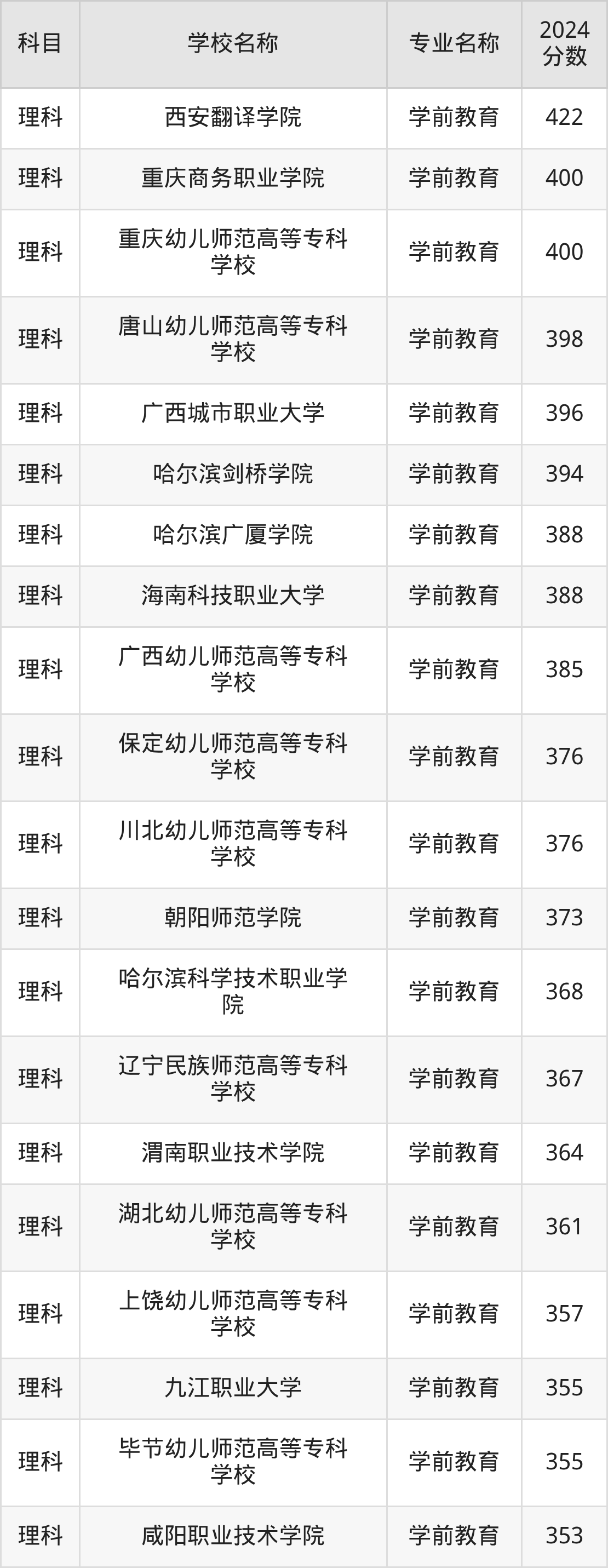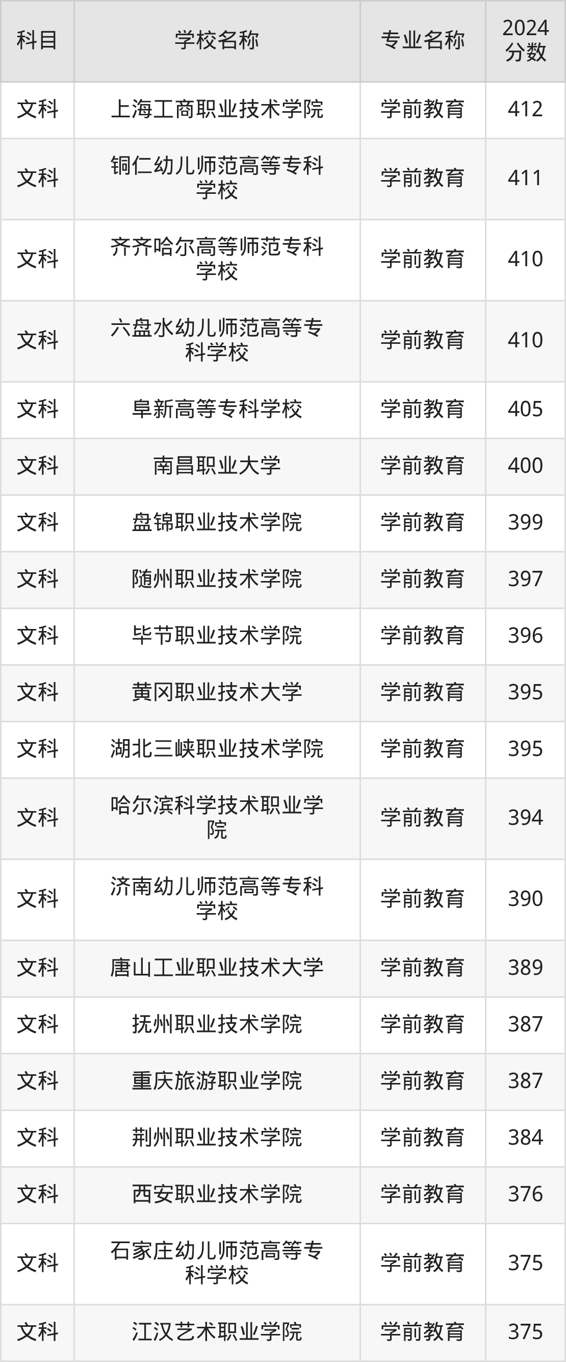 | 曲靖职业技术学院 | 学前教育 | 395 |