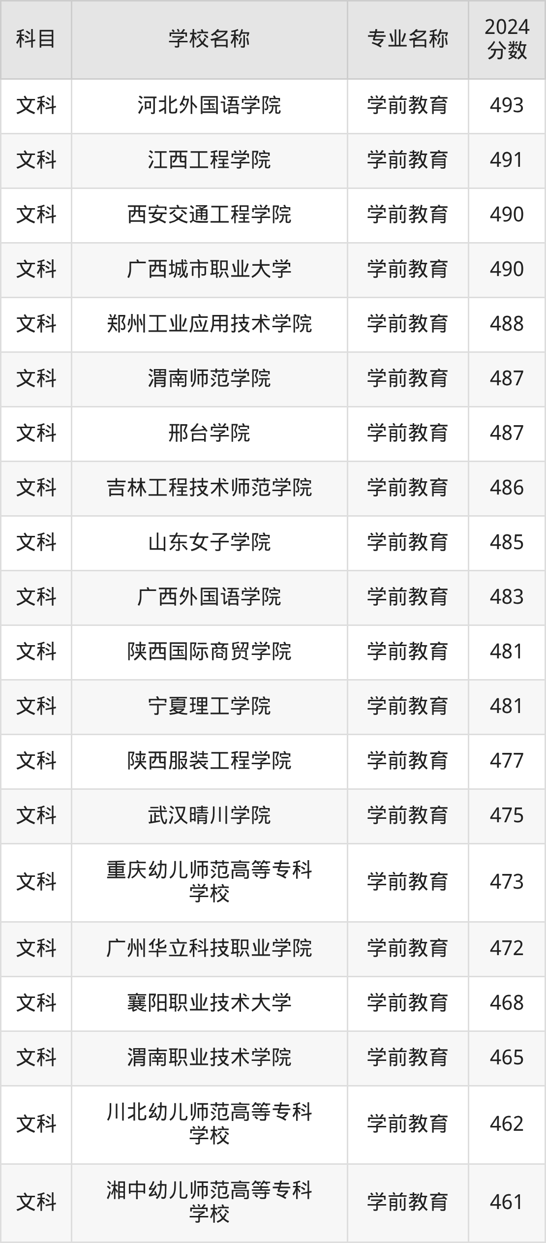 | 昆明传媒学院 | 学前教育 | 483 |