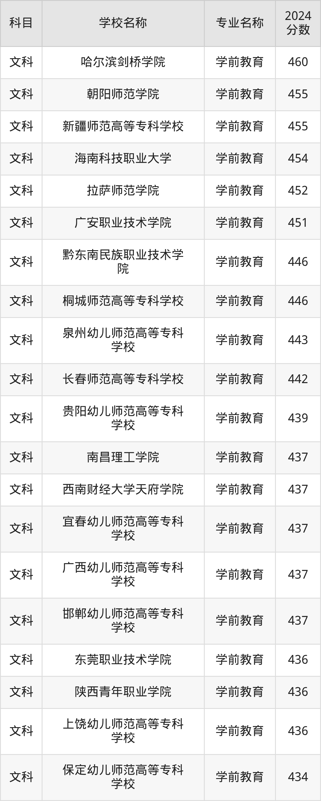 | 西双版纳职业技术学院 | 学前教育(师范 类) | 439 |