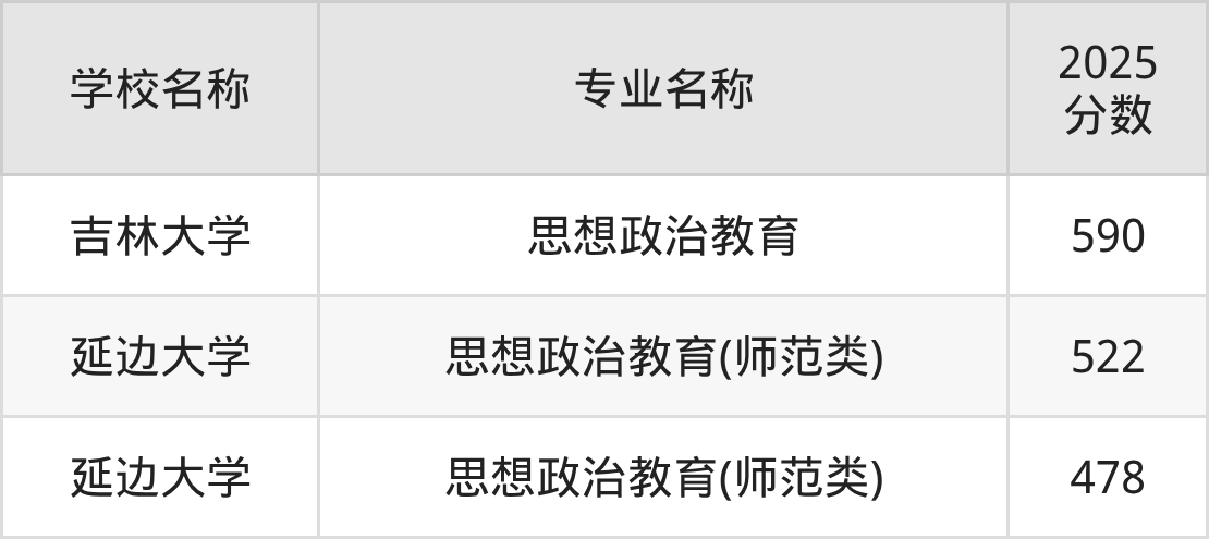 圆梦小编根据吉林2025年高考历史组专业分,将开设了思想政治教育专业且位于吉林省内的大学按照“录取分”从高到低排序,得出了以上榜单。