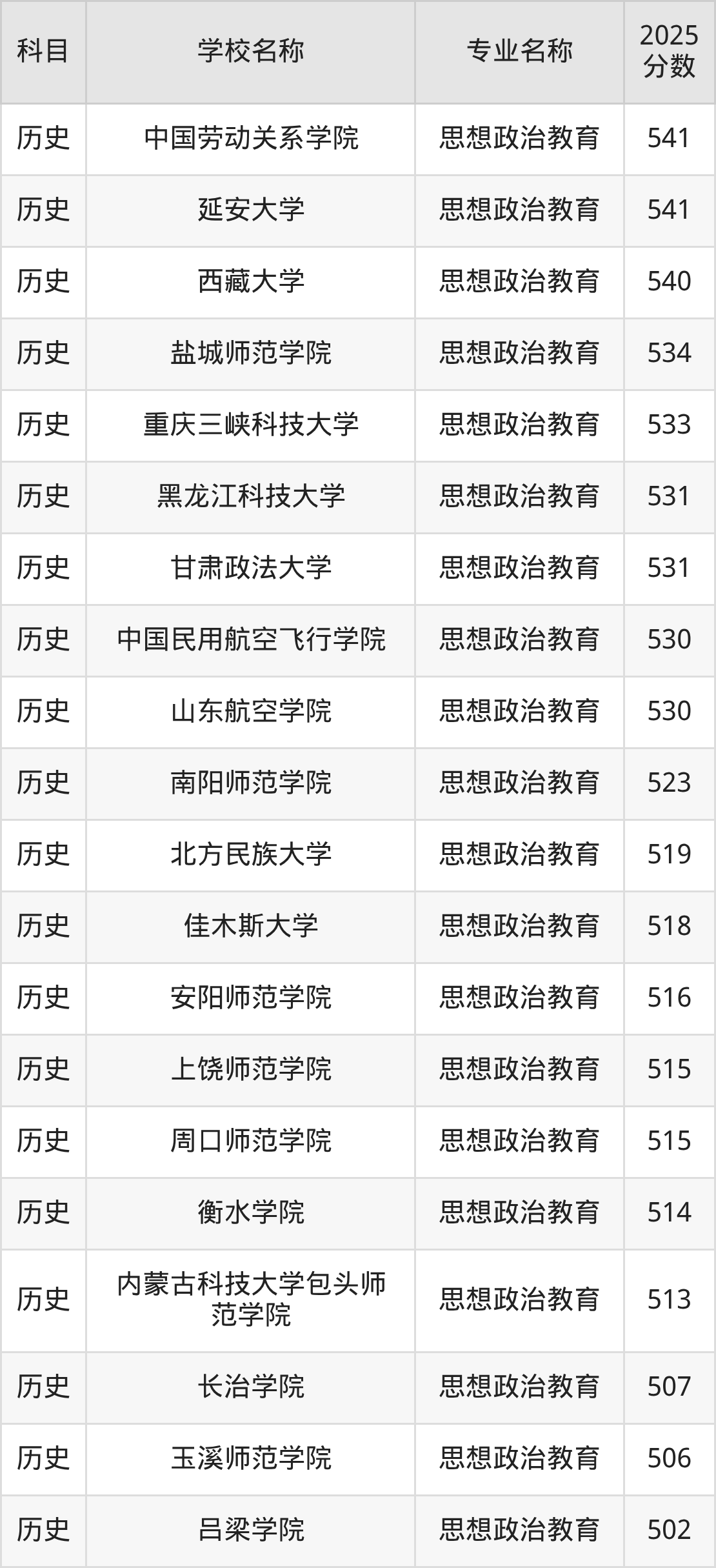 | 东北电力大学 | 思想政治教育 | 541 |