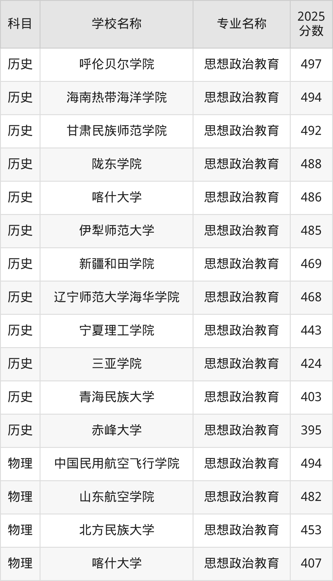 | 学校名称 | 专业名称 | 2025 分数 |