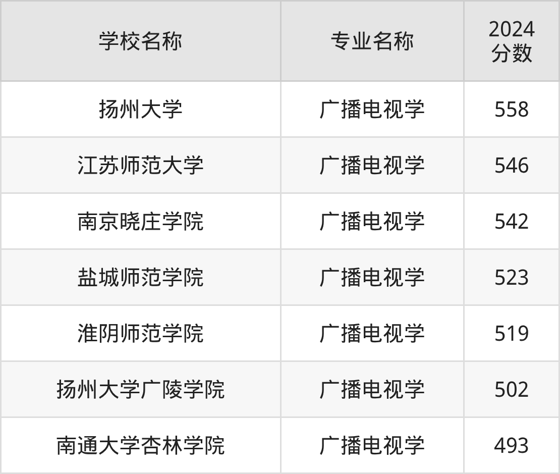 下文将为大家展示江苏省大学广播电视学专业2024年在江苏高考的最低录取分数线!