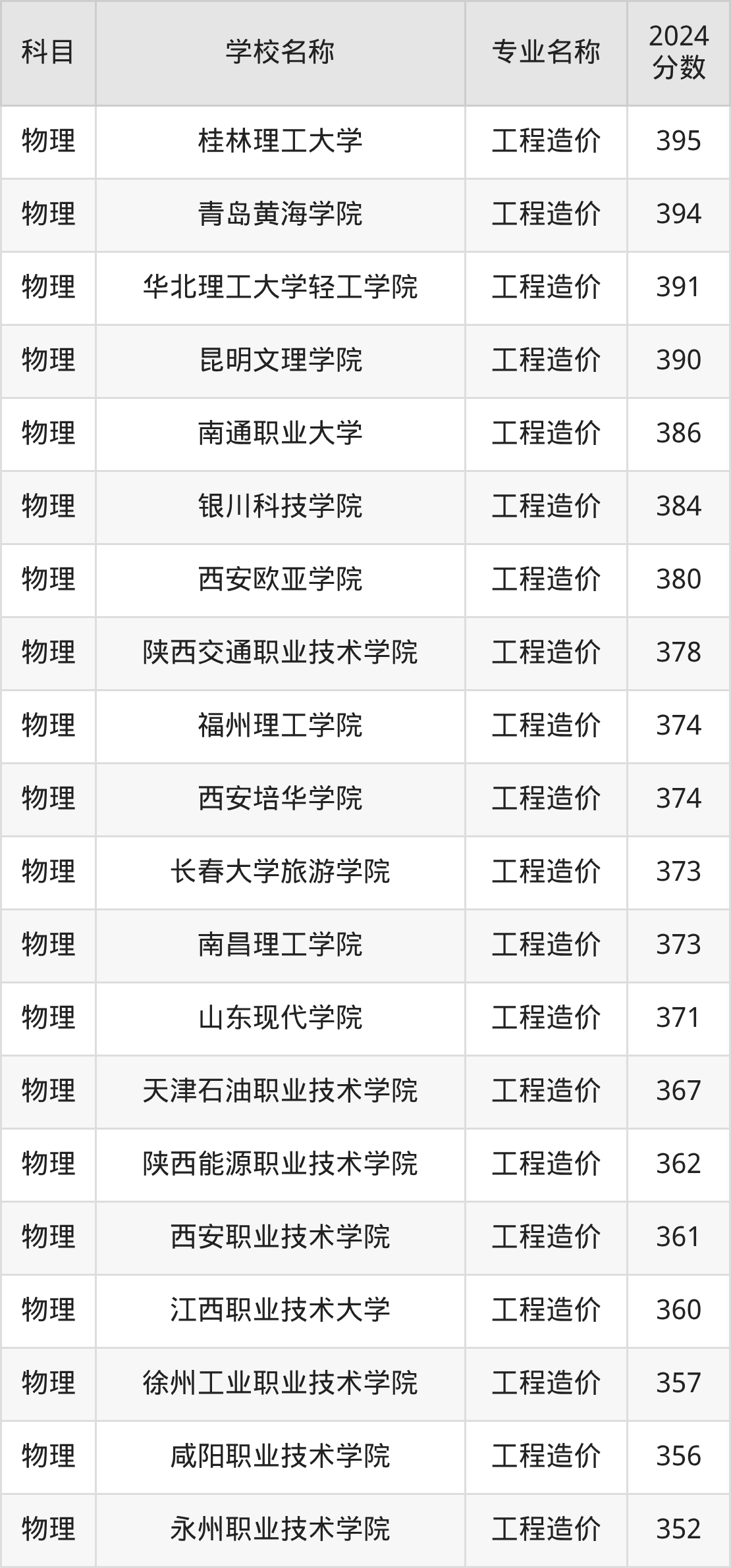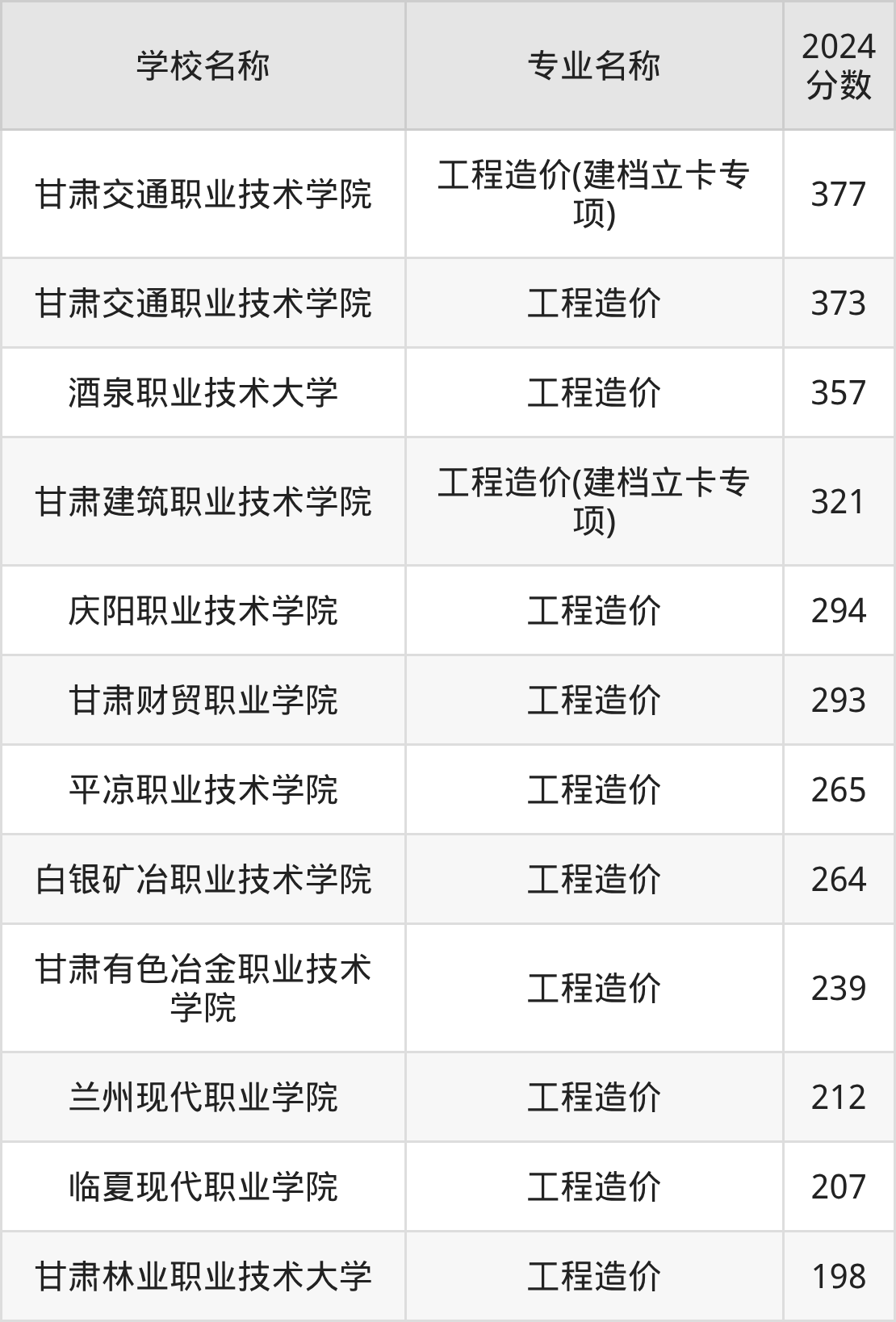 | 甘肃交通职业技术学院 | 工程造价 | 358 |