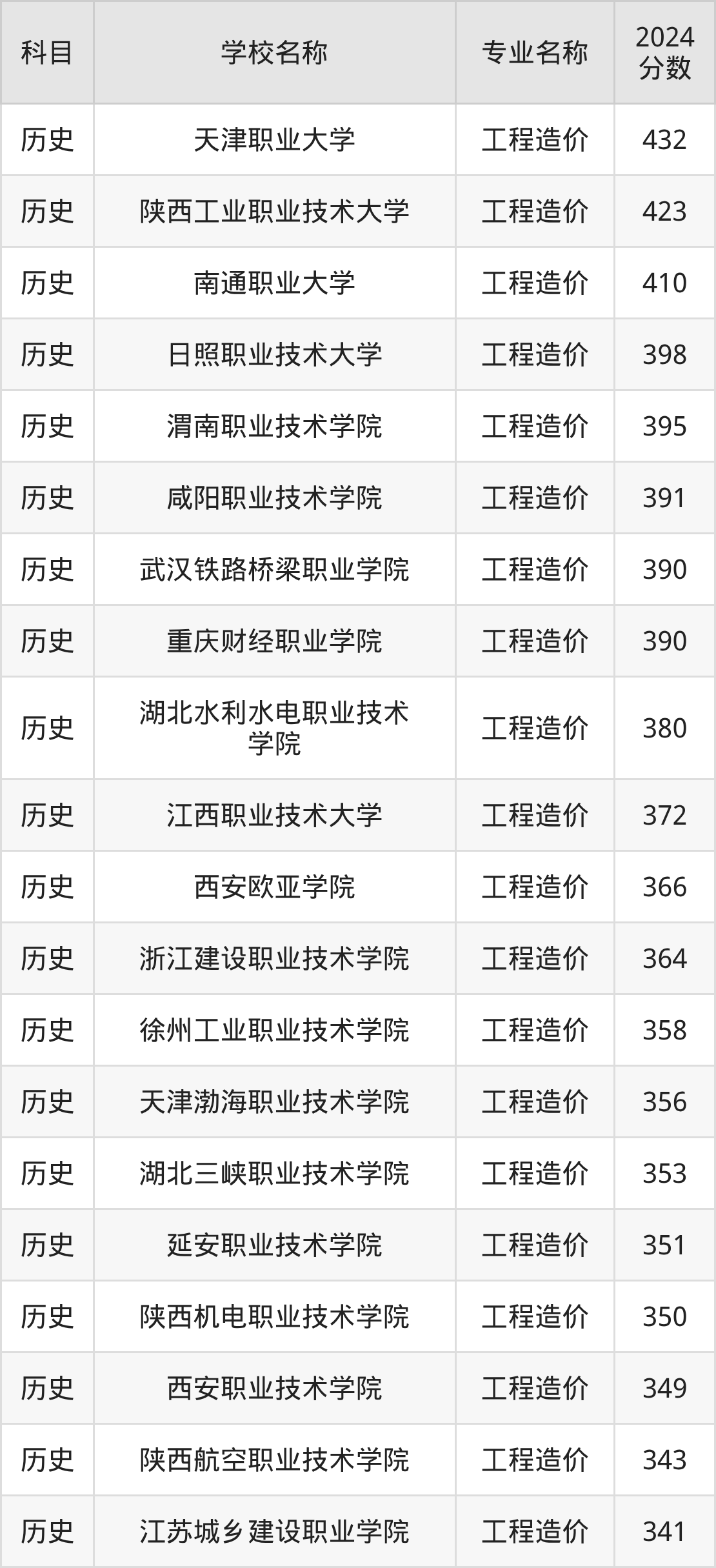 通过上文大家可以知晓,在甘肃省内招工程造价专业的院校数量较少,所以下文将为2026届高考生继续展示:省外大学的工程造价专业2024年在甘肃高考的录取情况,包含天津职业大学、陕西工业职业技术大学、南通职业大学、日照职业技术大学、渭南职业技术学院。