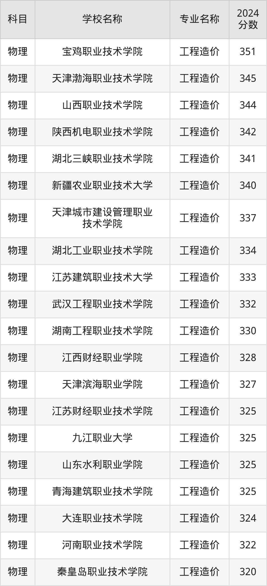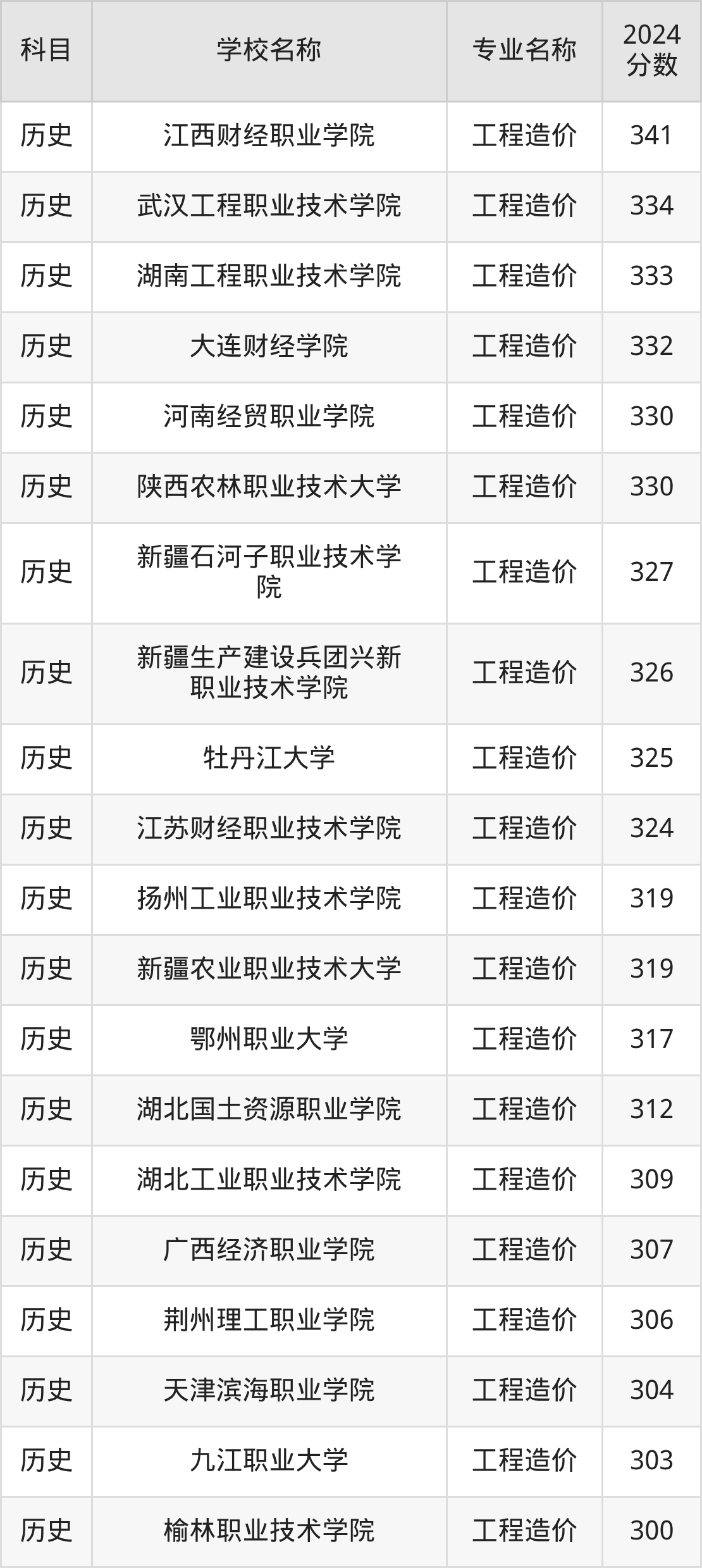 | 酒泉职业技术大学 | 工程造价 | 330 |