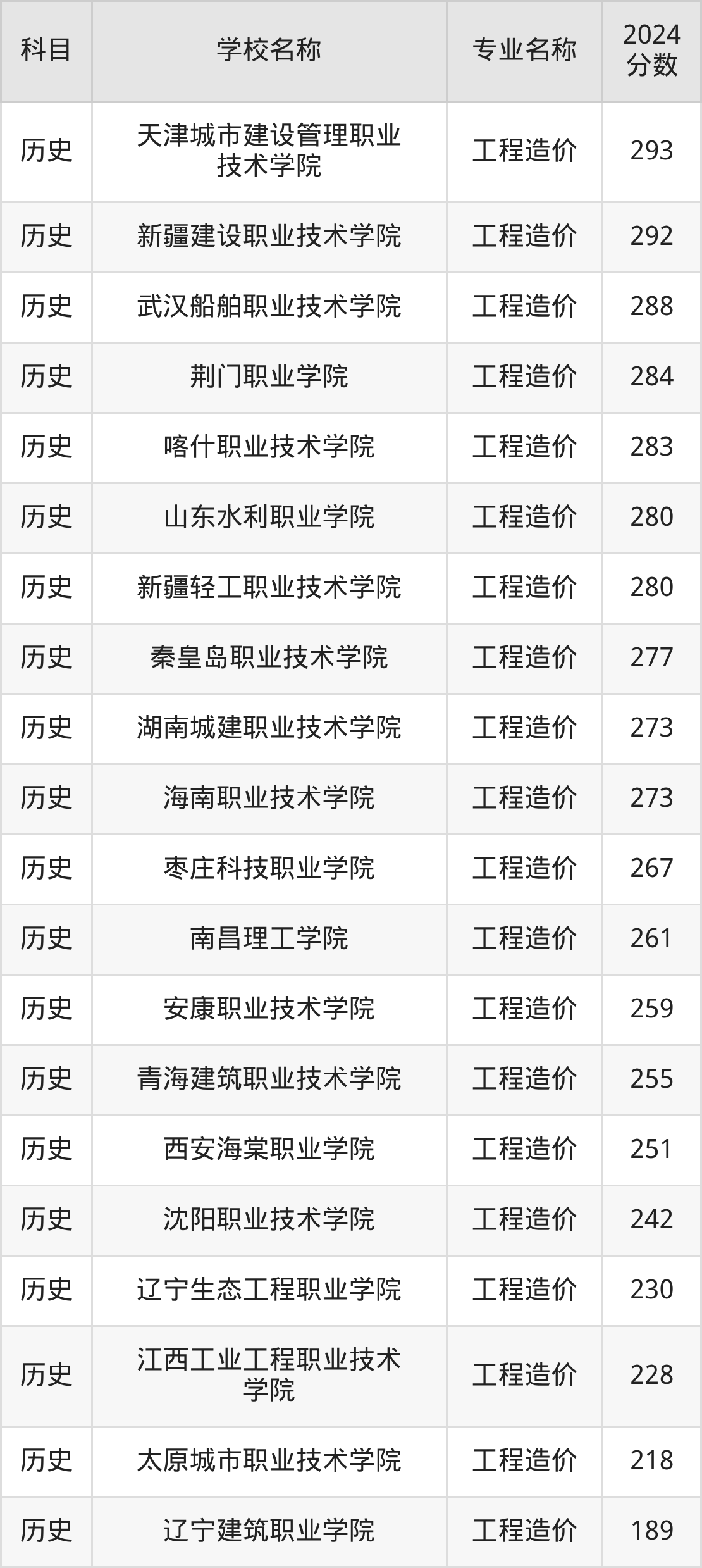 | 平凉职业技术学院 | 工程造价 | 190 |