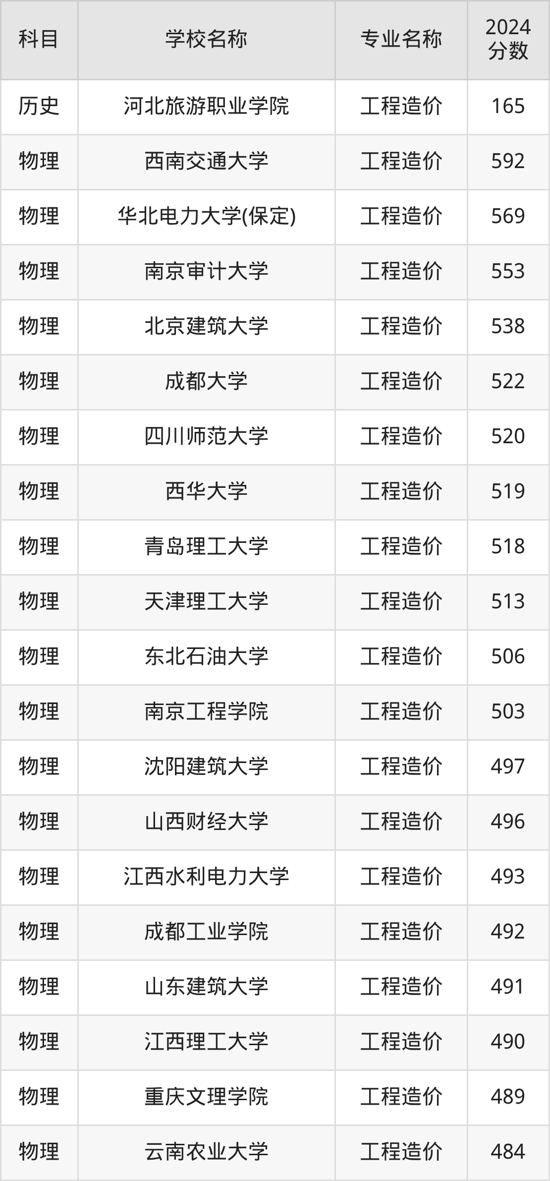 下文将为大家展示甘肃省大学工程造价专业2024年在甘肃高考的最低录取分数线!