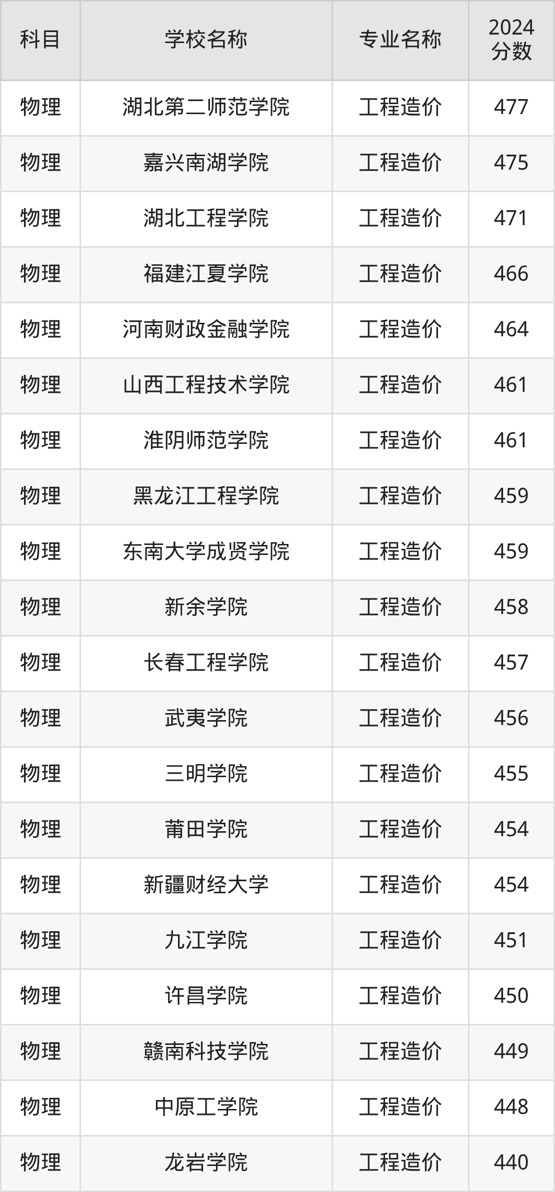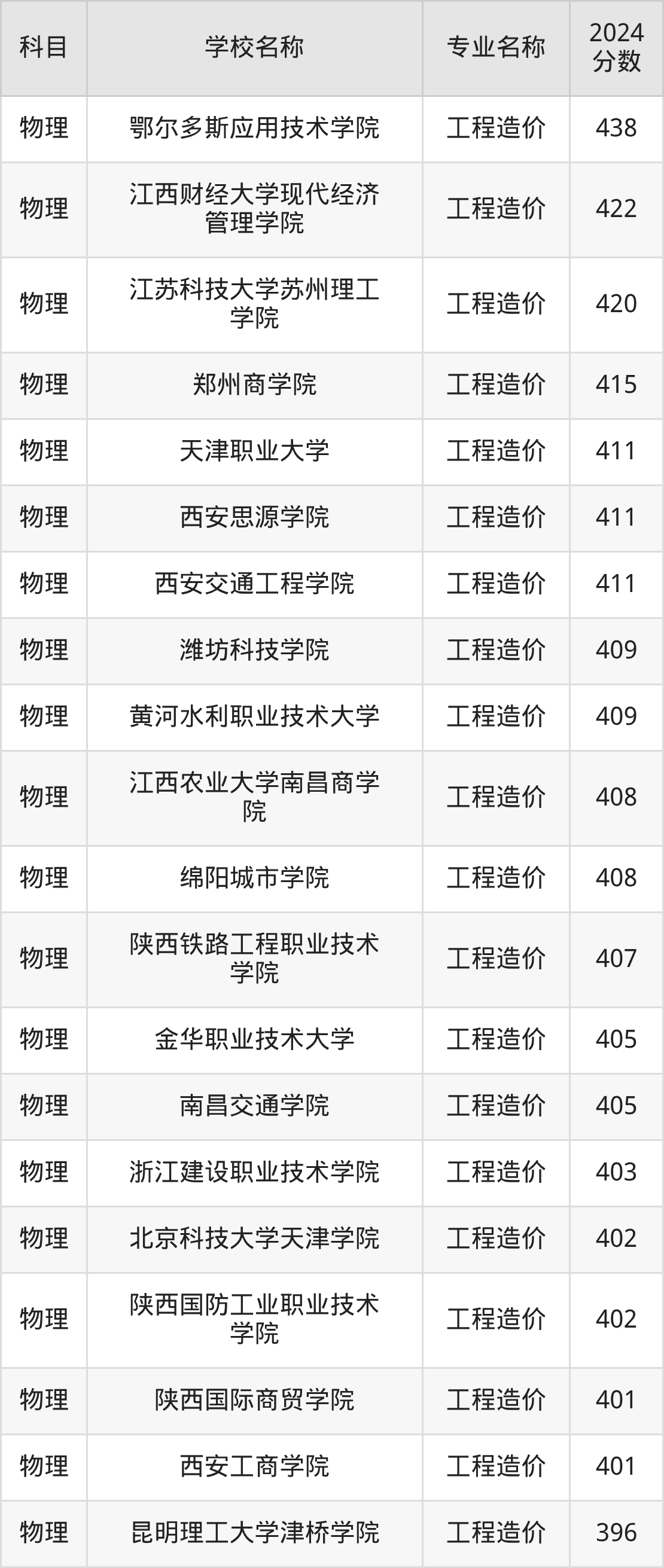 甘肃高考物理组:工程造价专业的最低分是190分~513分