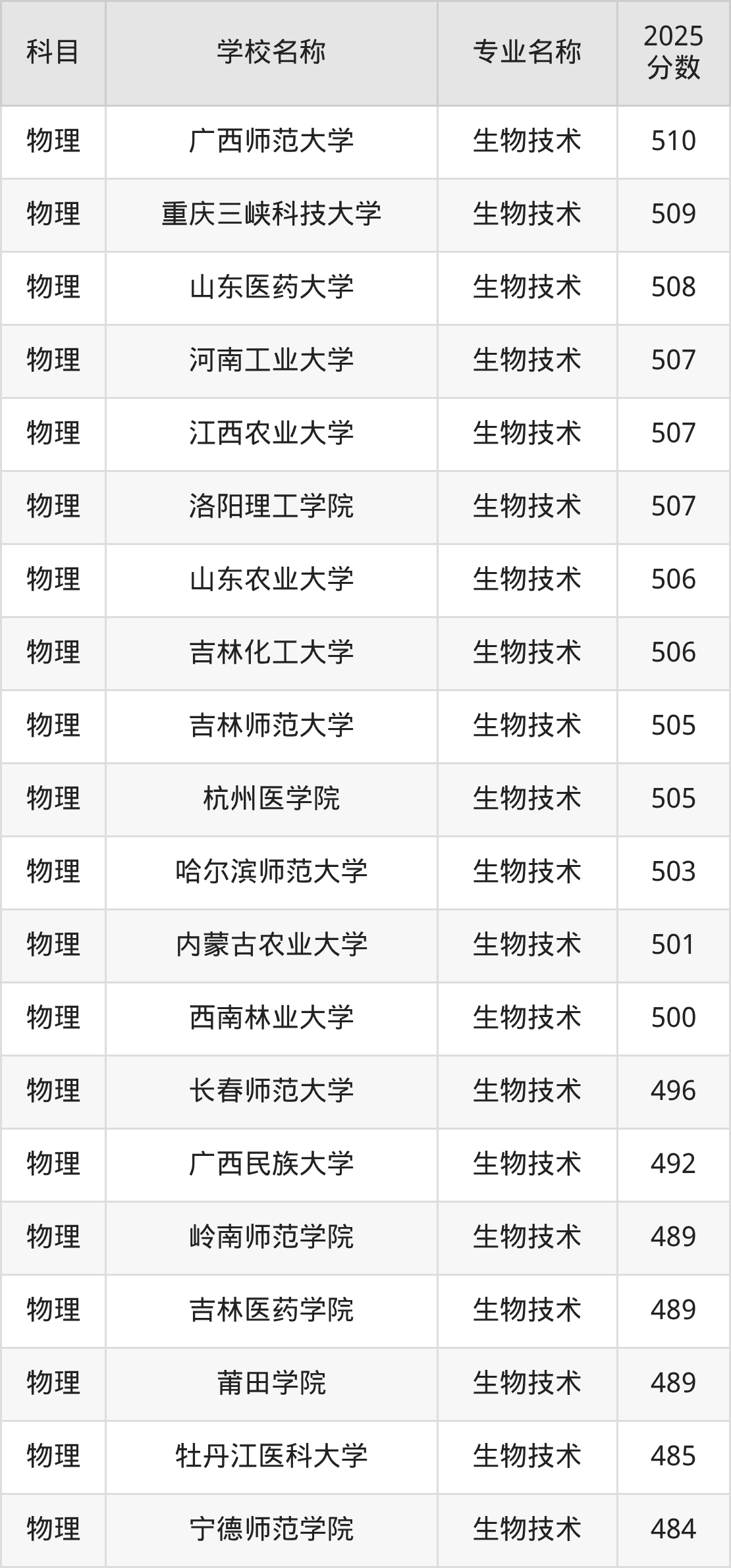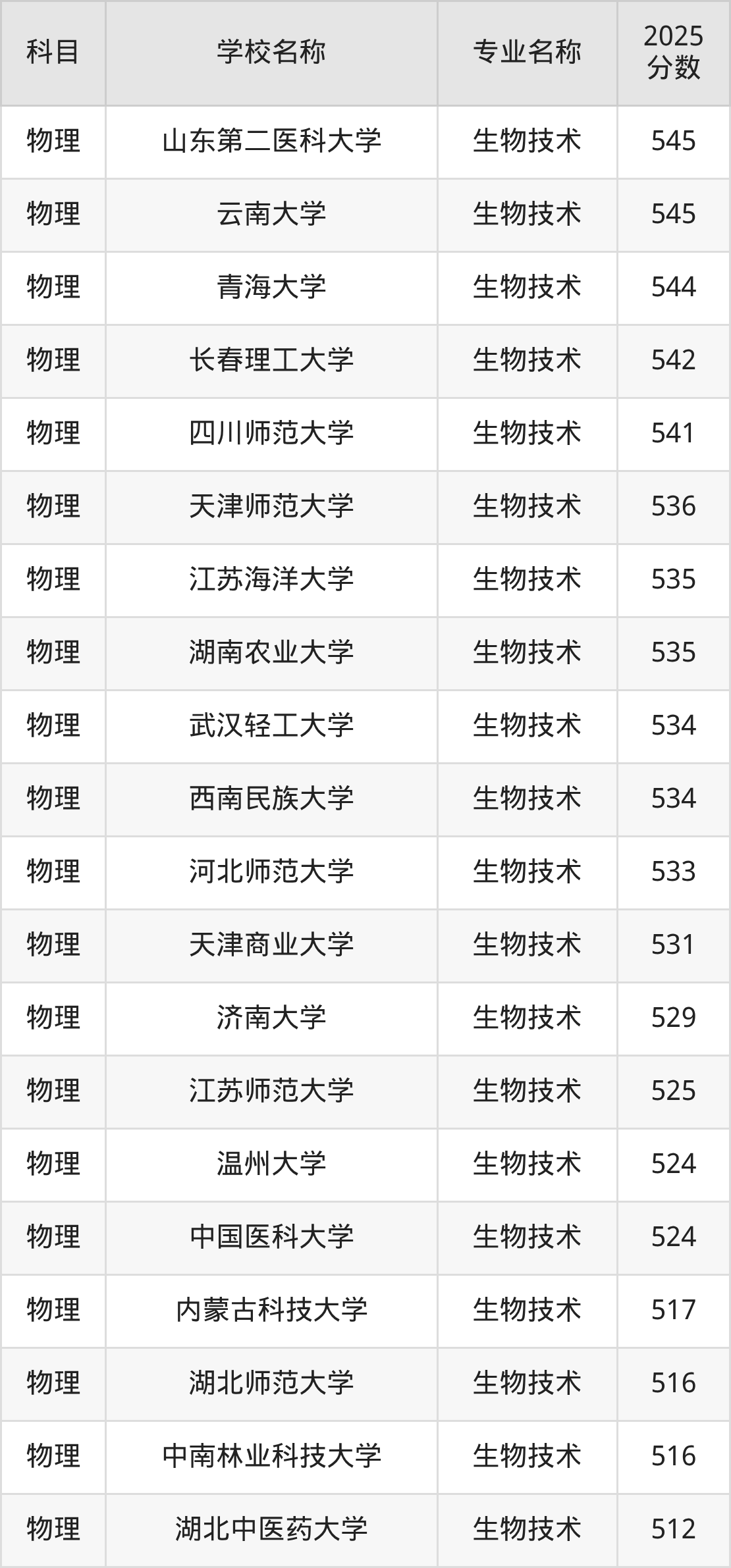 圆梦小编根据山西2025年高考物理组专业分,将开设了生物技术专业且位于山西省内的大学按照“录取分”从高到低排序,得出了以上榜单。