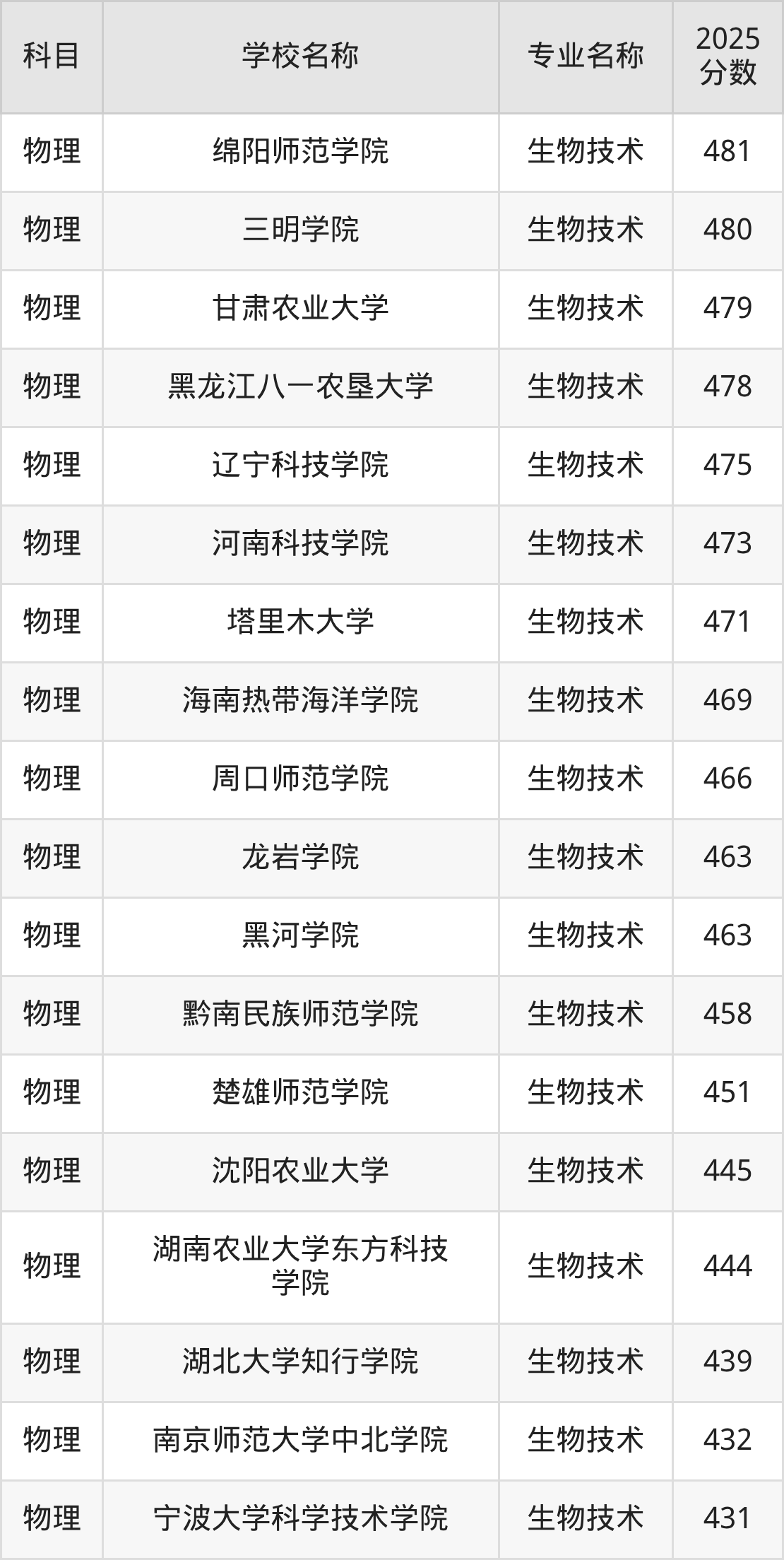 下文将为大家展示山西省大学生物技术专业2025年在山西高考的最低录取分数线!