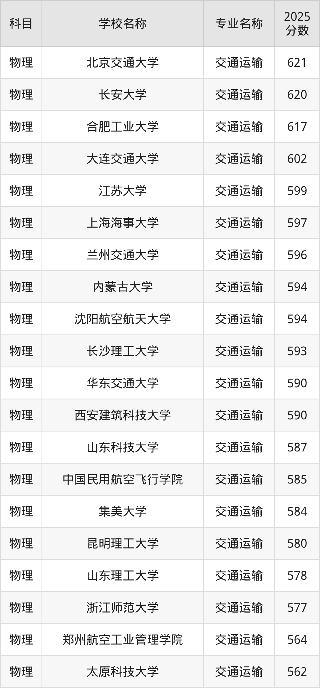 | 石家庄铁道大学 | 交通运输 | 593 |