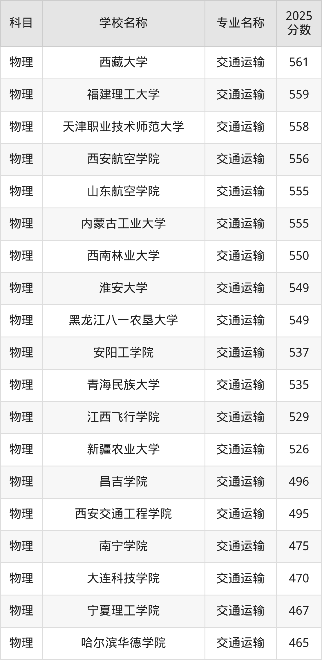 | 学校名称 | 专业名称 | 2025 分数 |