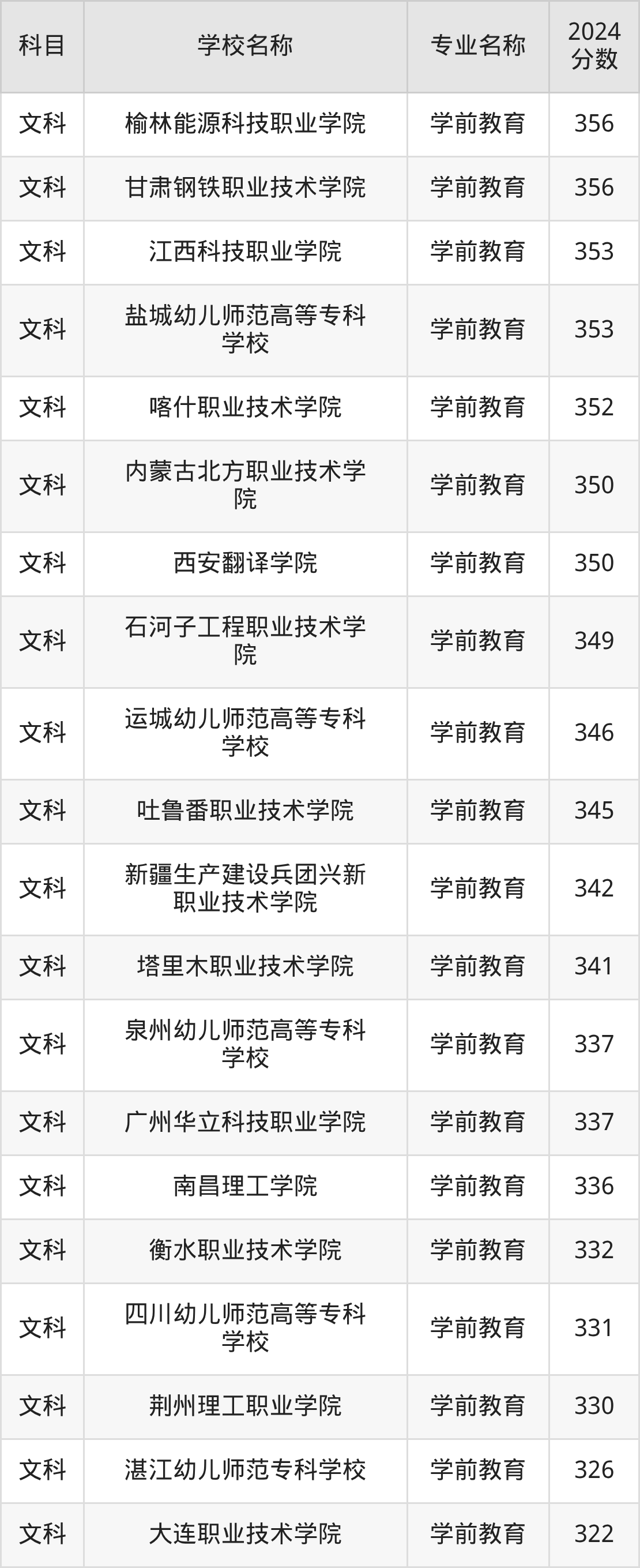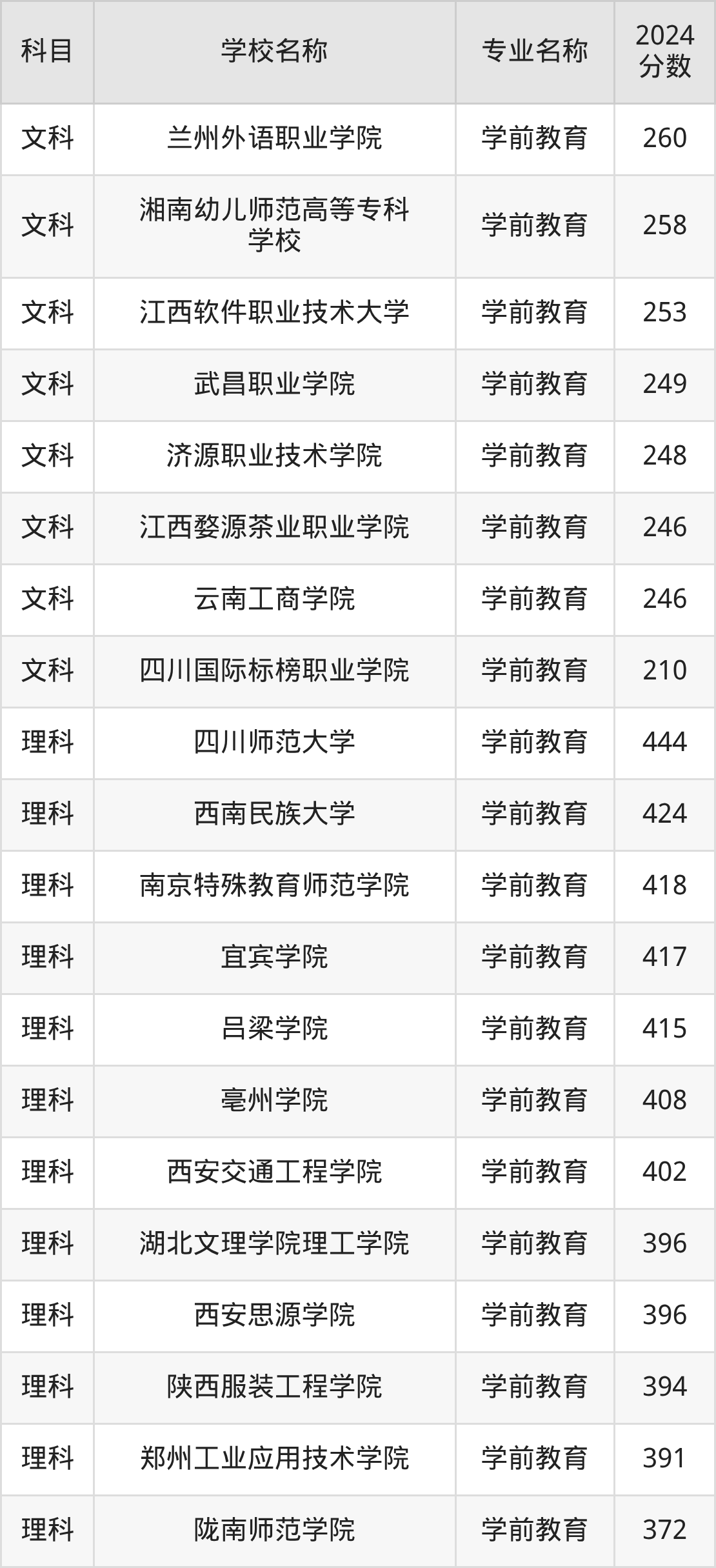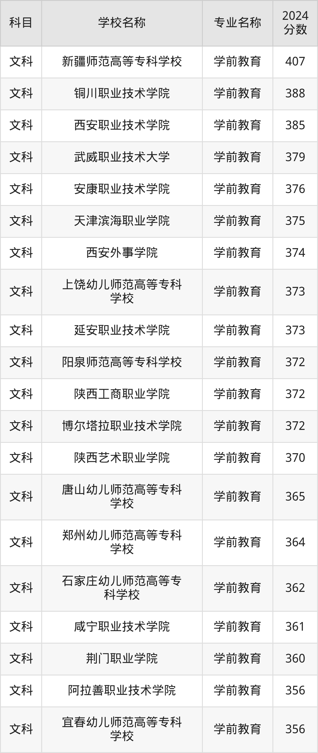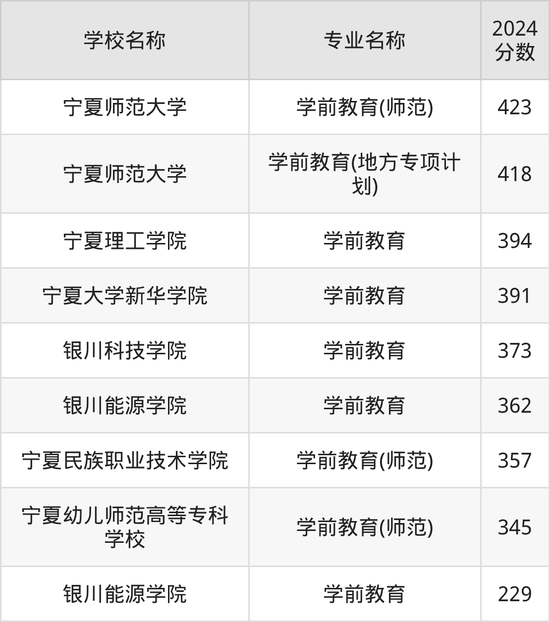 | 宁夏幼儿师范高等专科 学校 | 学前教育(师范) | 390 |