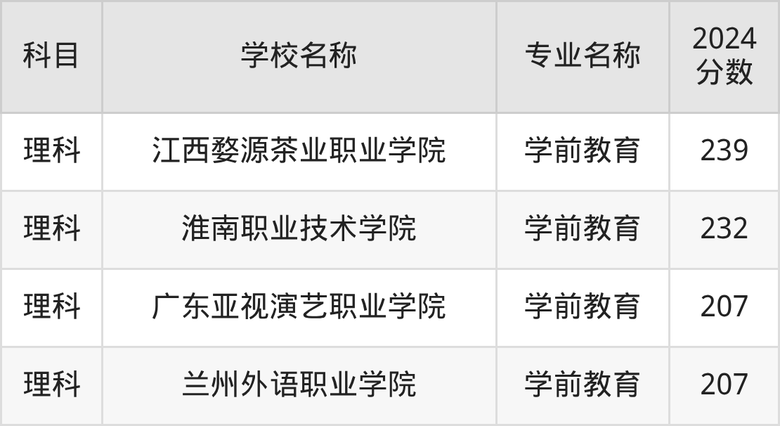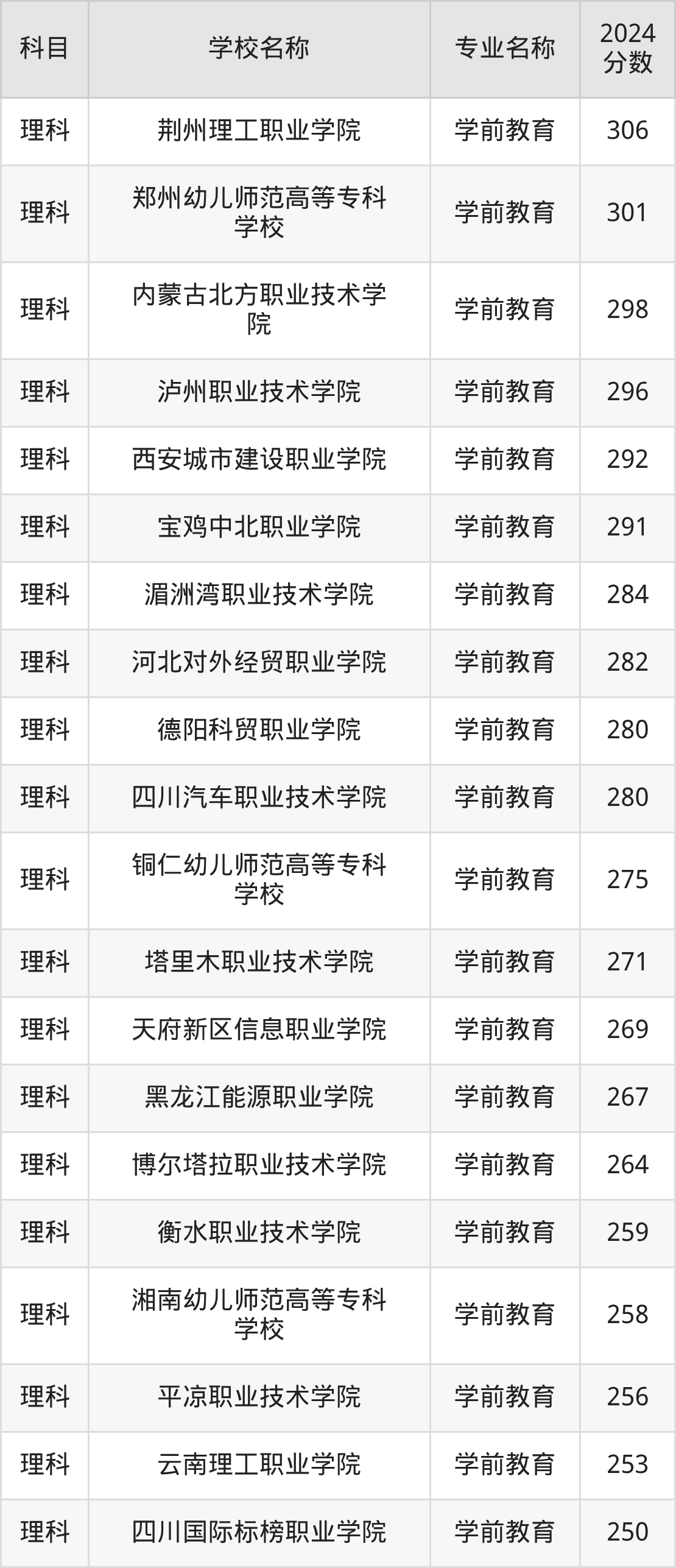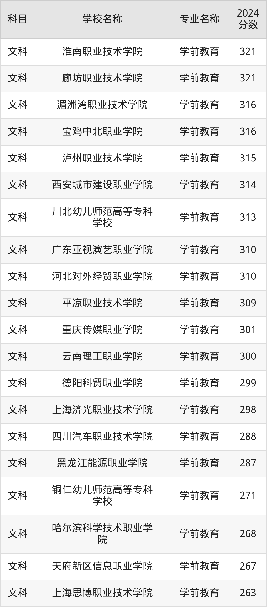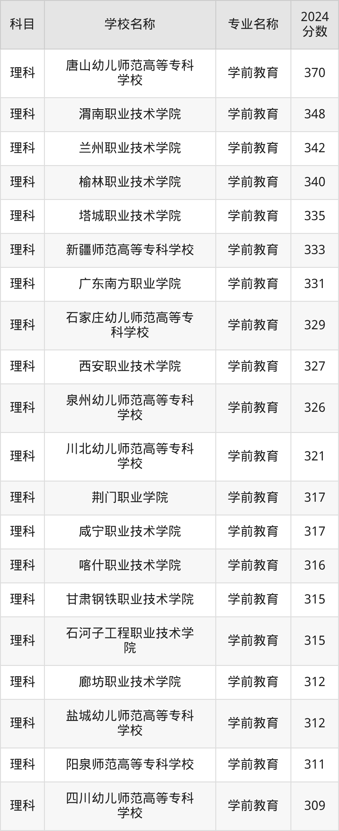 | 宁夏幼儿师范高等专科 学校 | 学前教育(师范) | 390 |