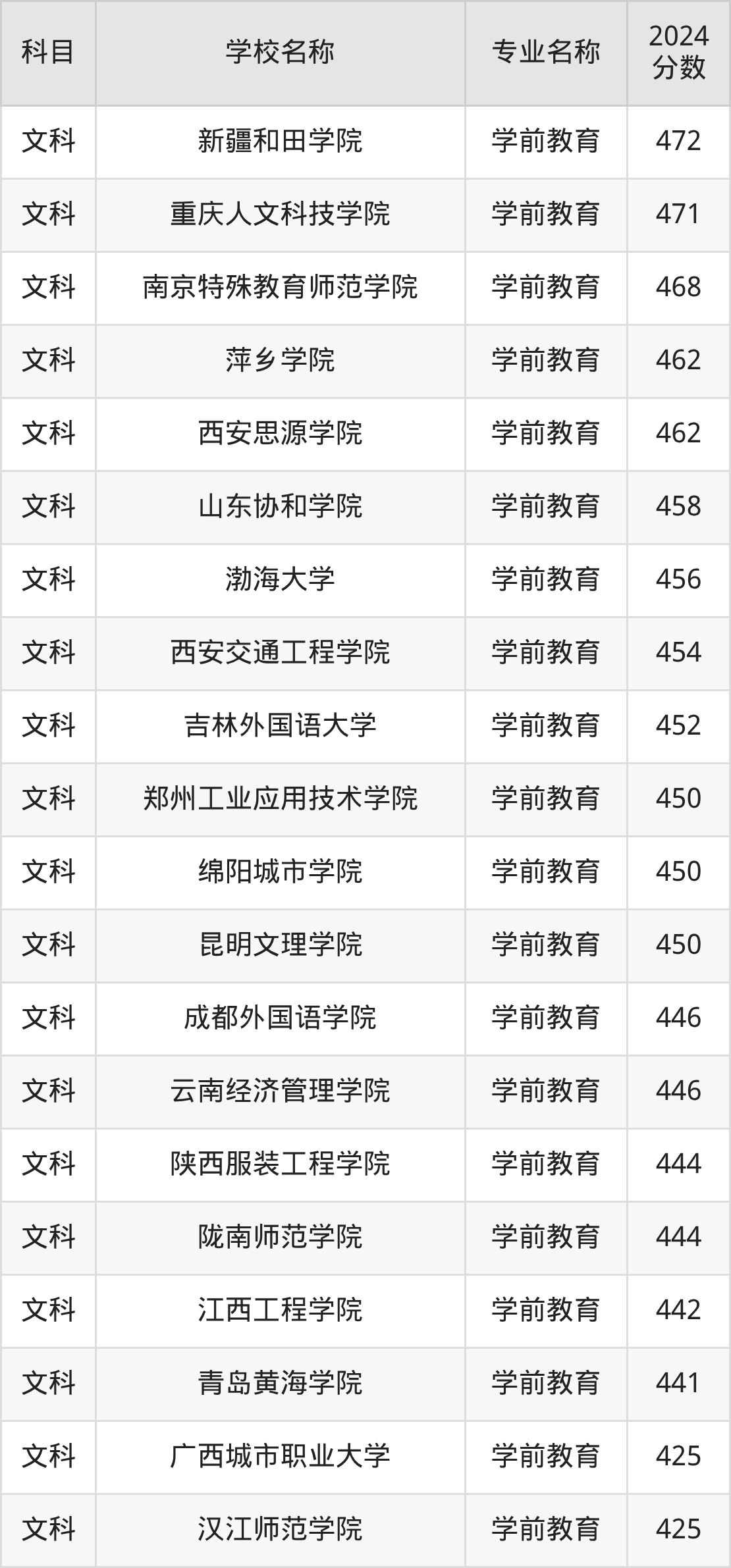 | 宁夏大学新华学院 | 学前教育 | 457 |