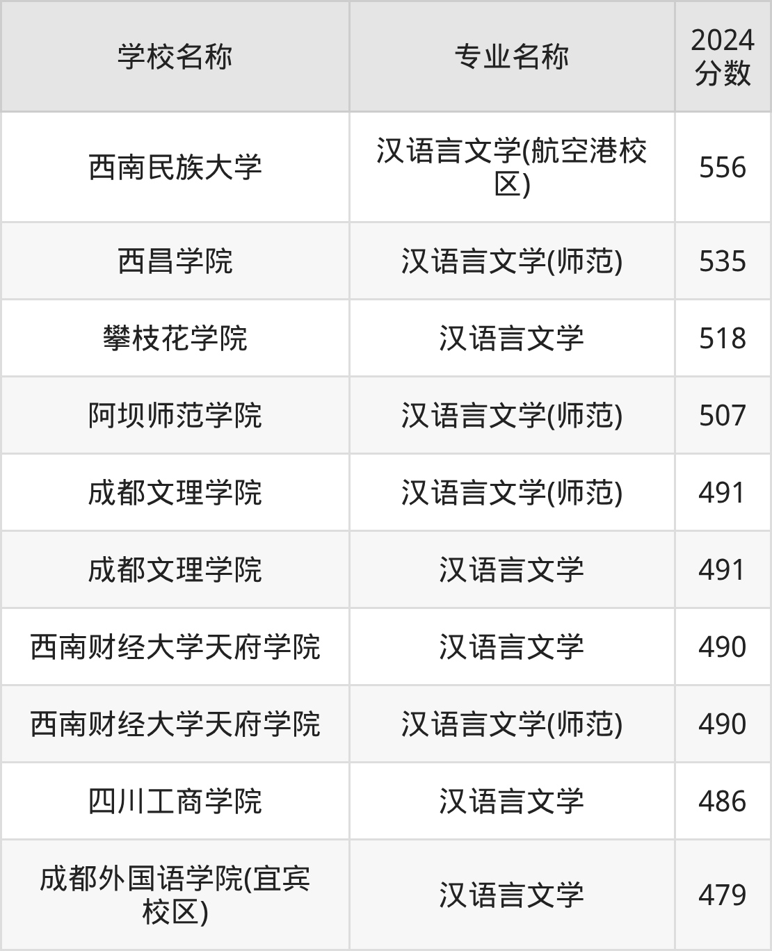 | 西南财经大学天府学院 | 汉语言文学 | 494 |