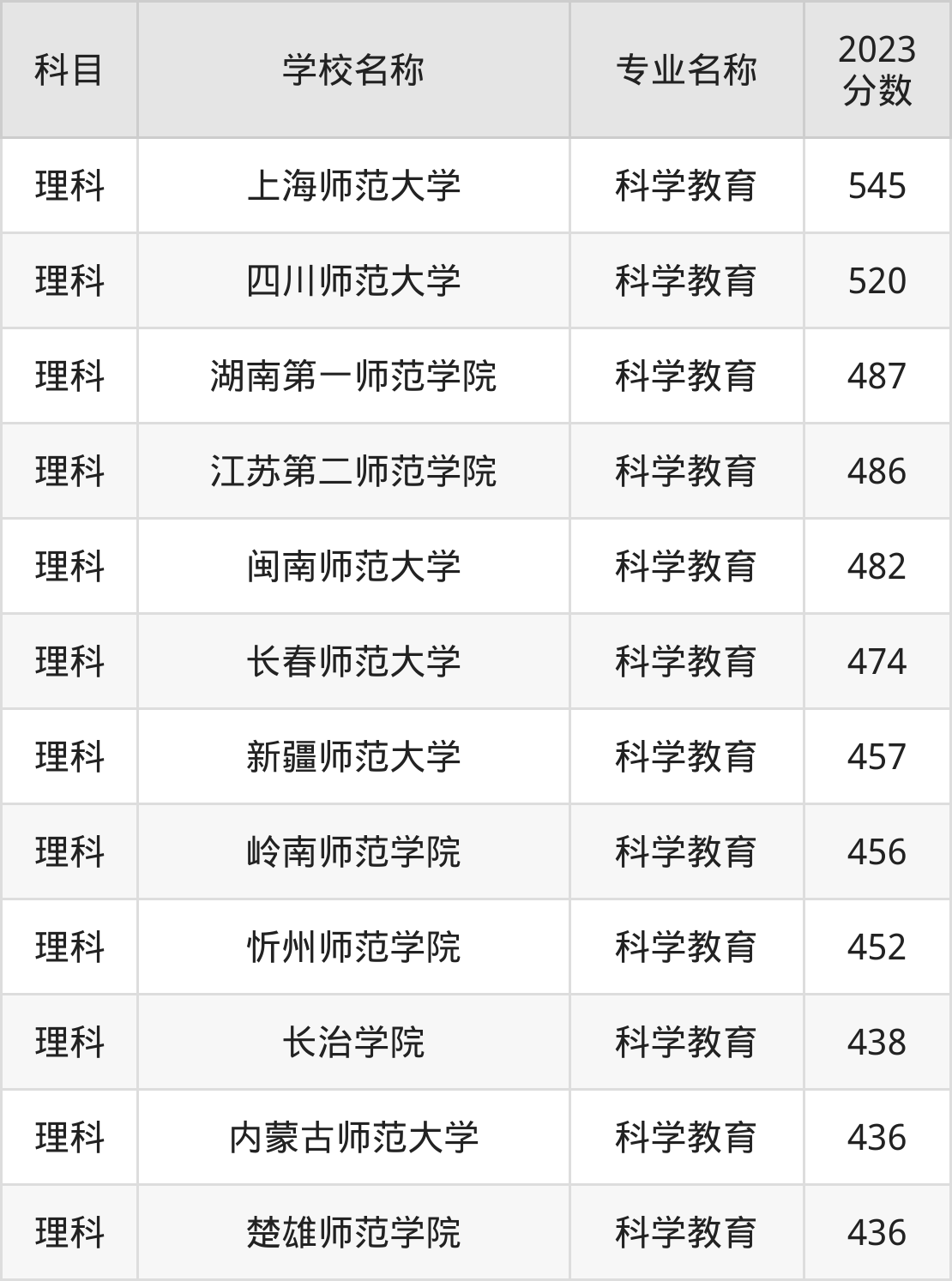 | 安庆师范大学 | 科学教育(师范) | 500 |