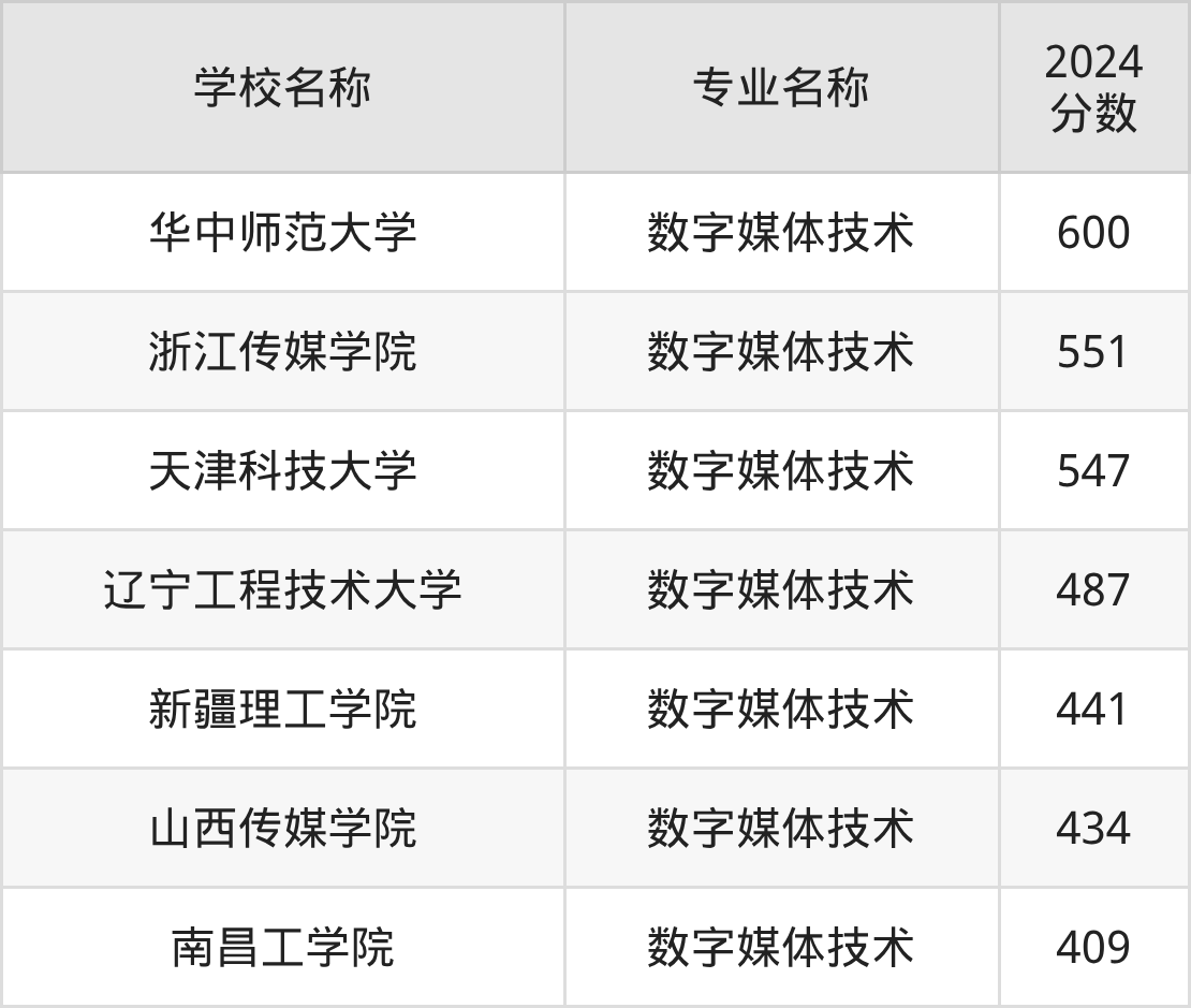 | 北京邮电大学 | 数字媒体技术 | 654 |