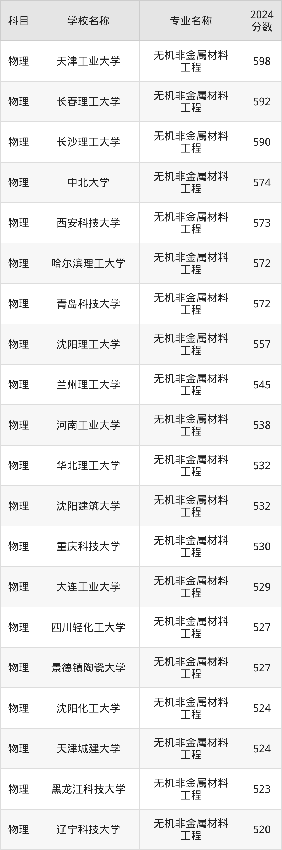 | 安徽理工大学 | 无机非金属材料 工程 | 561 |