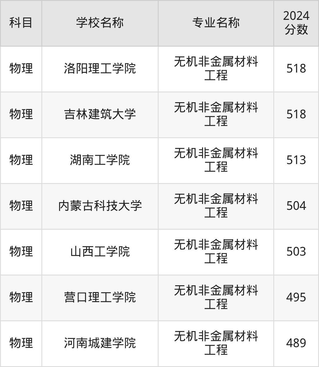 圆梦小编根据安徽2024年高考物理组专业分,将开设了无机非金属材料工程专业且位于安徽省内的大学按照“录取分”从高到低排序,得出了以上榜单。
