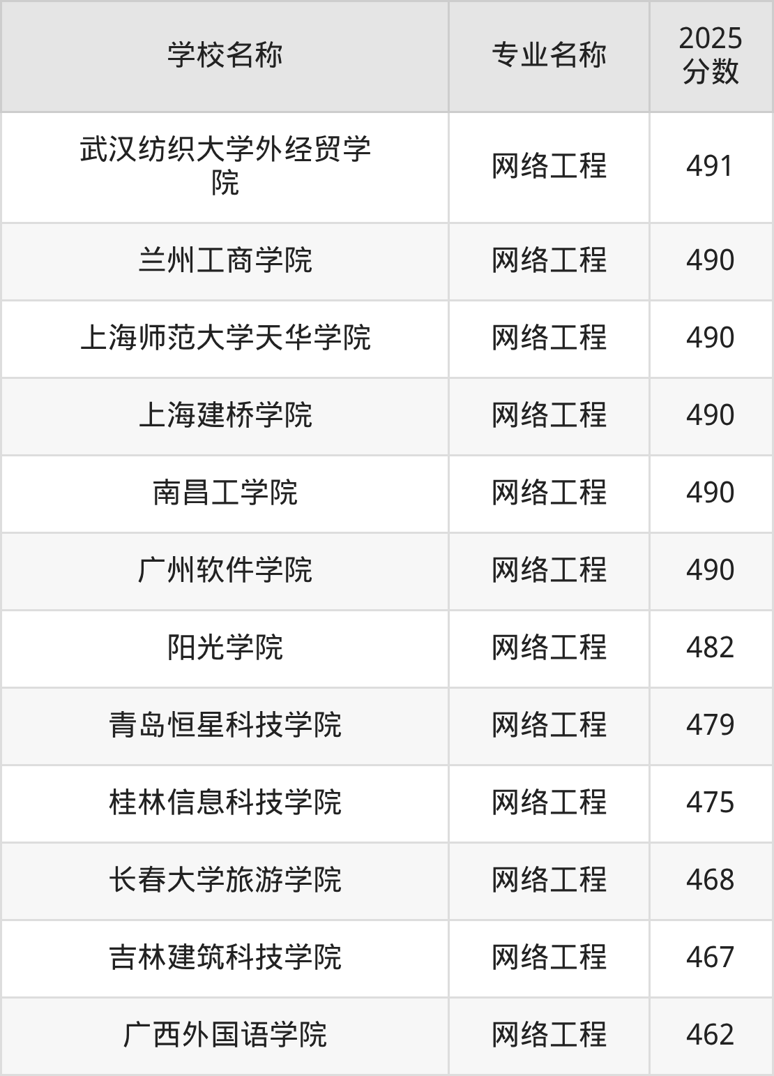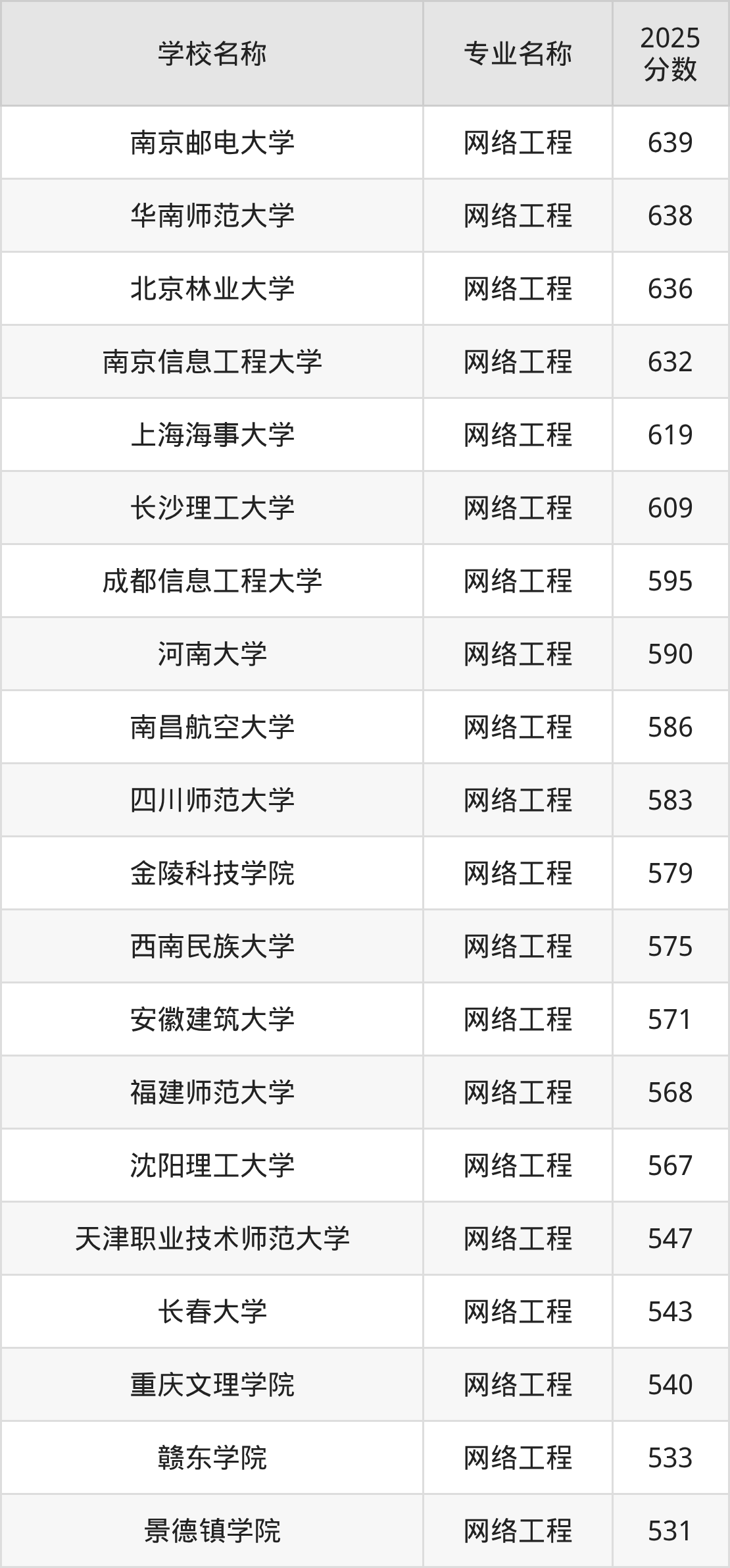 | 浙江传媒学院 | 网络工程 | 571 |