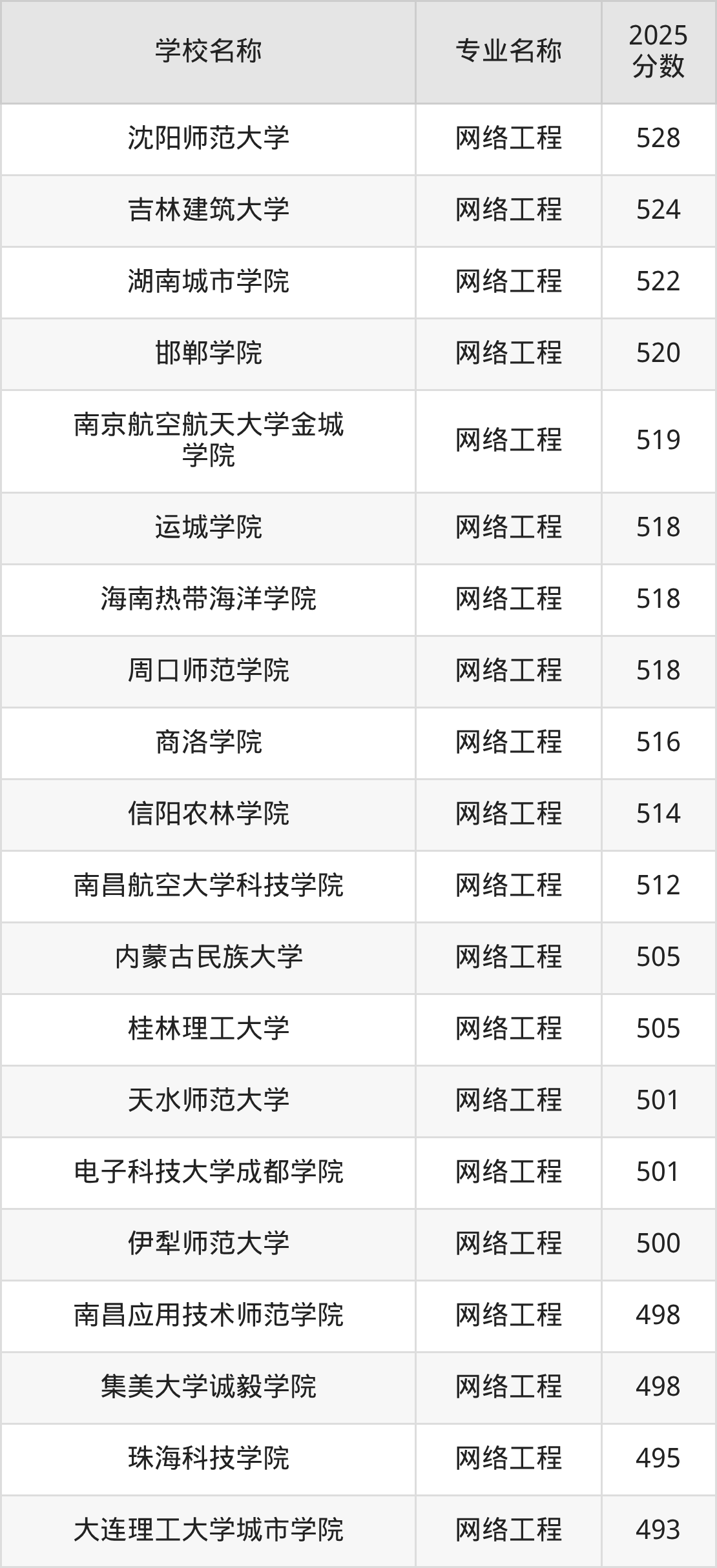 | 宁波工程学院 | 网络工程 | 556 |