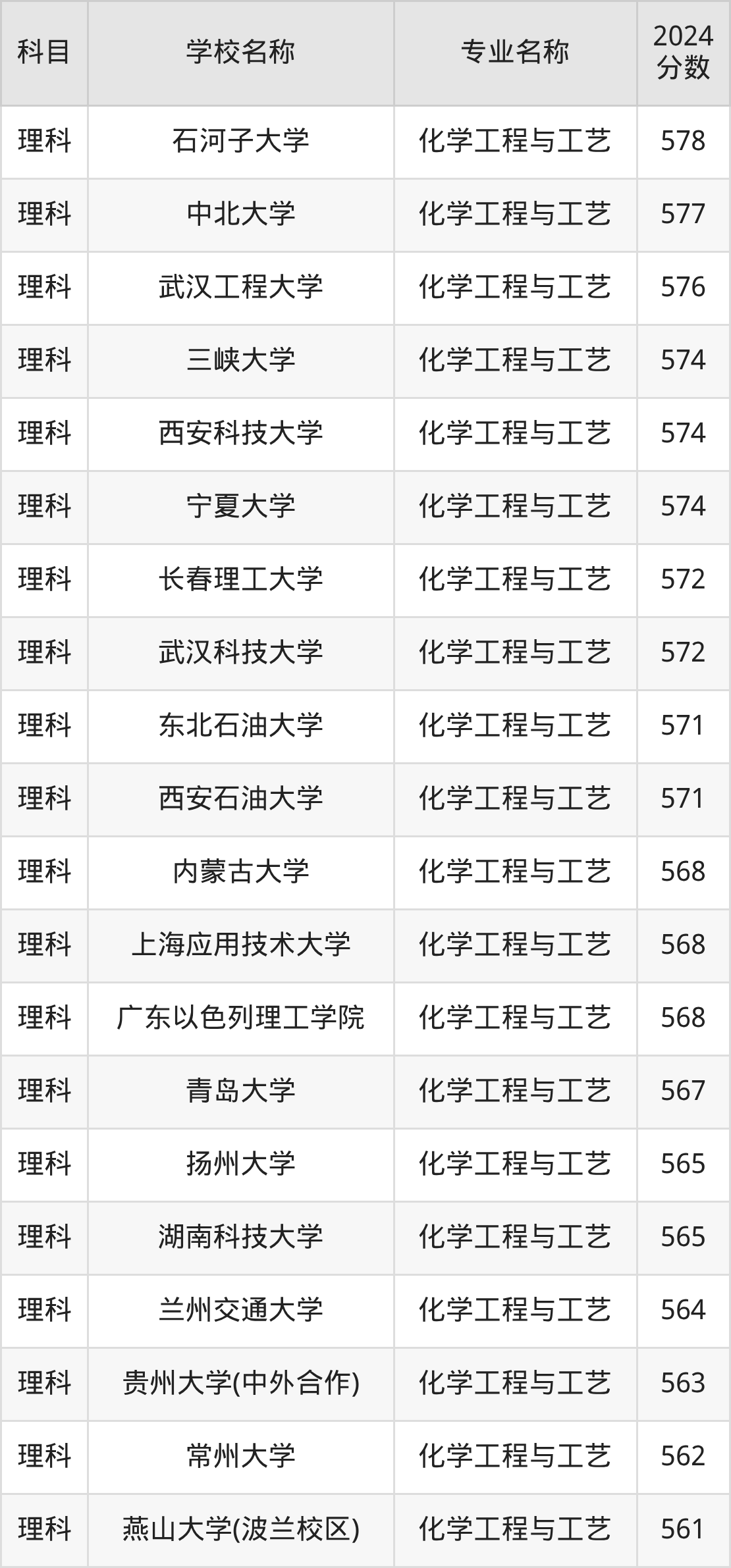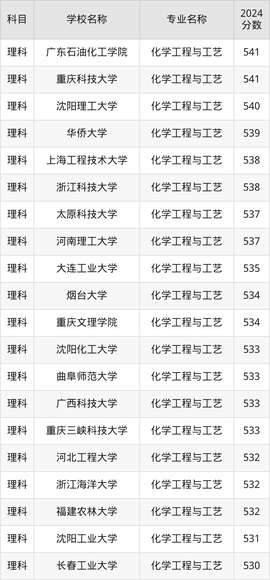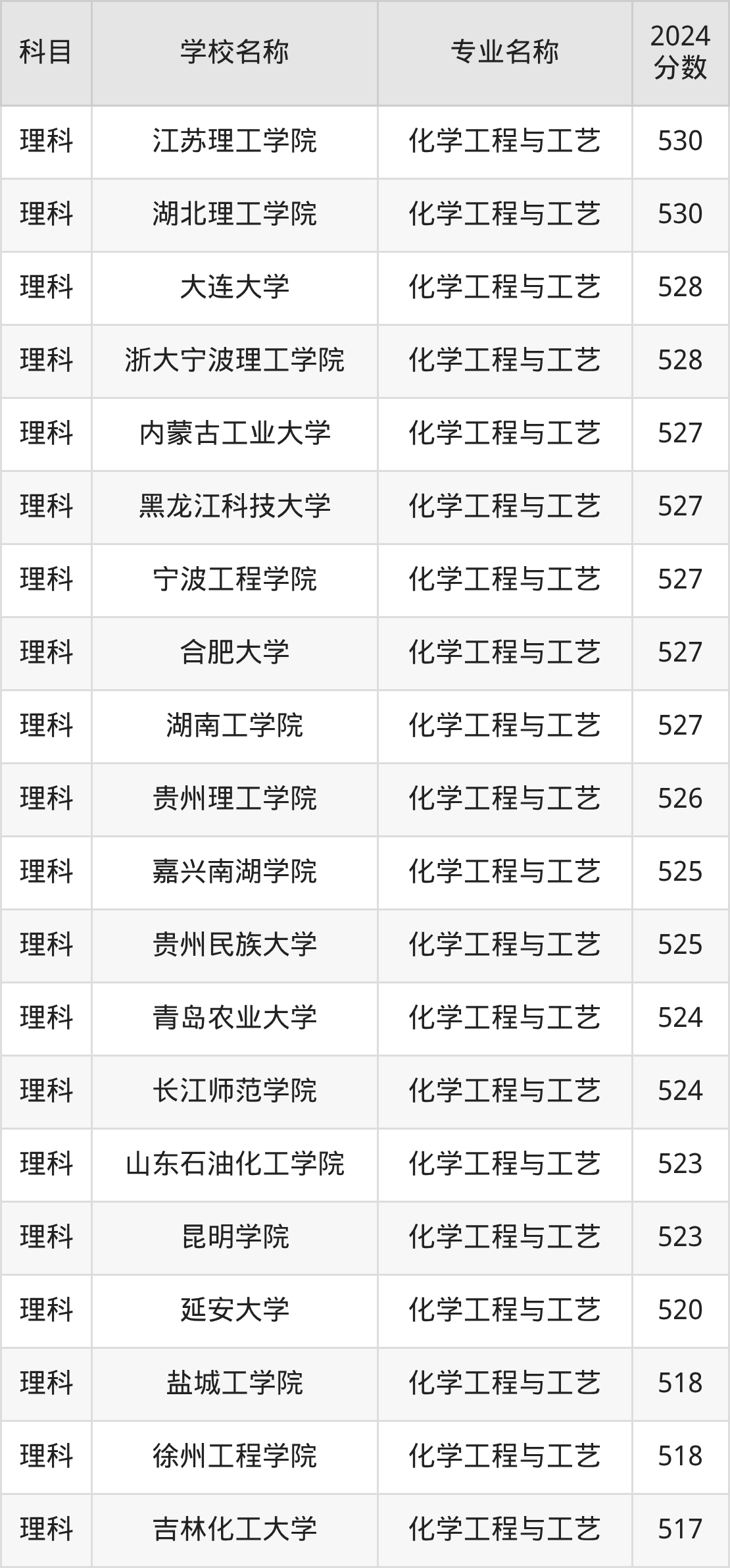 下文将为大家展示四川省大学化学工程与工艺专业2024年在四川高考的最低录取分数线!