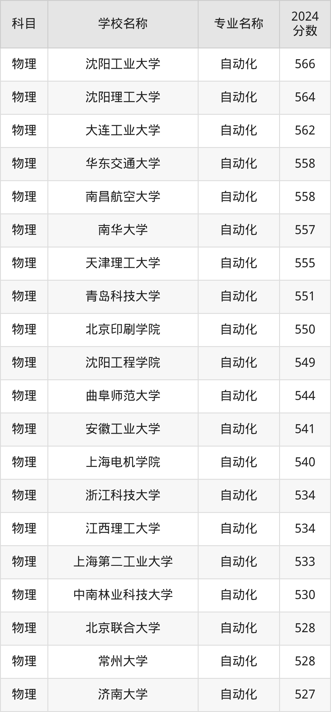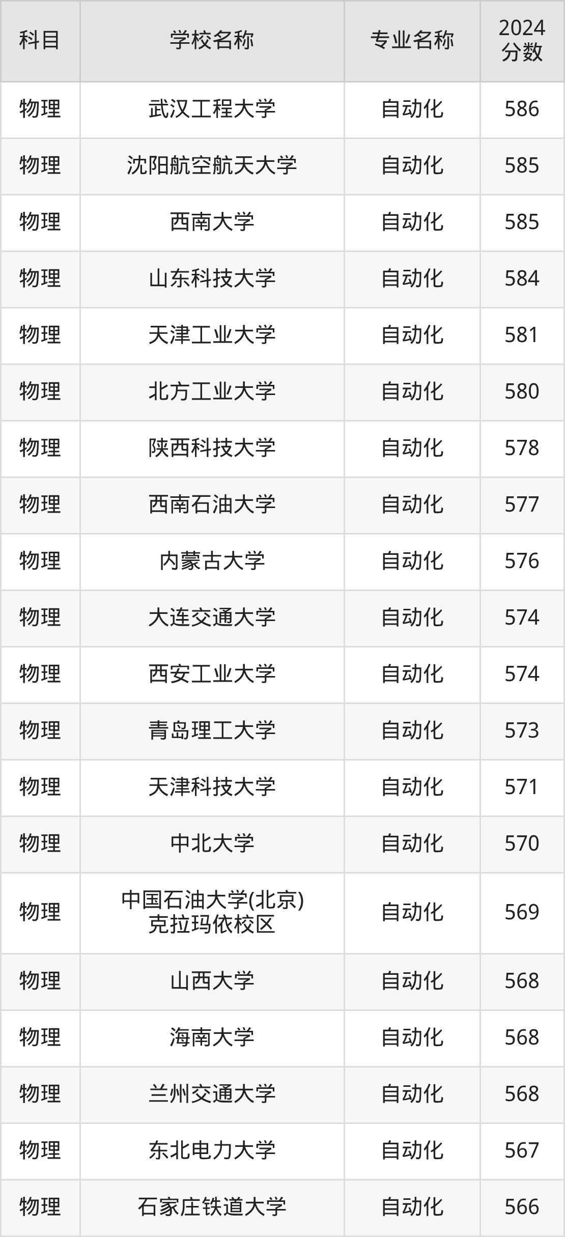 二、黑龙江自动化专业排名(软科版)