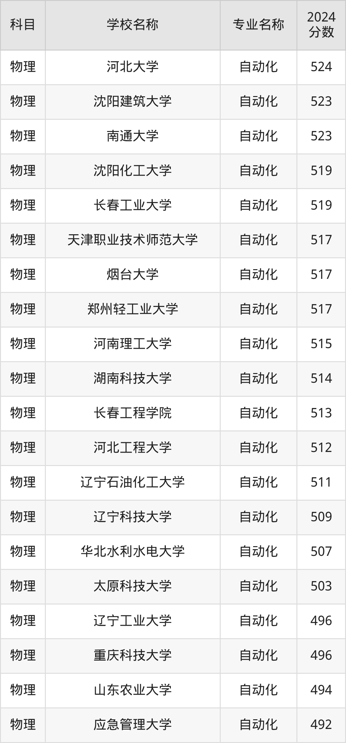 | 黑龙江科技大学 | 自动化 | 496 |