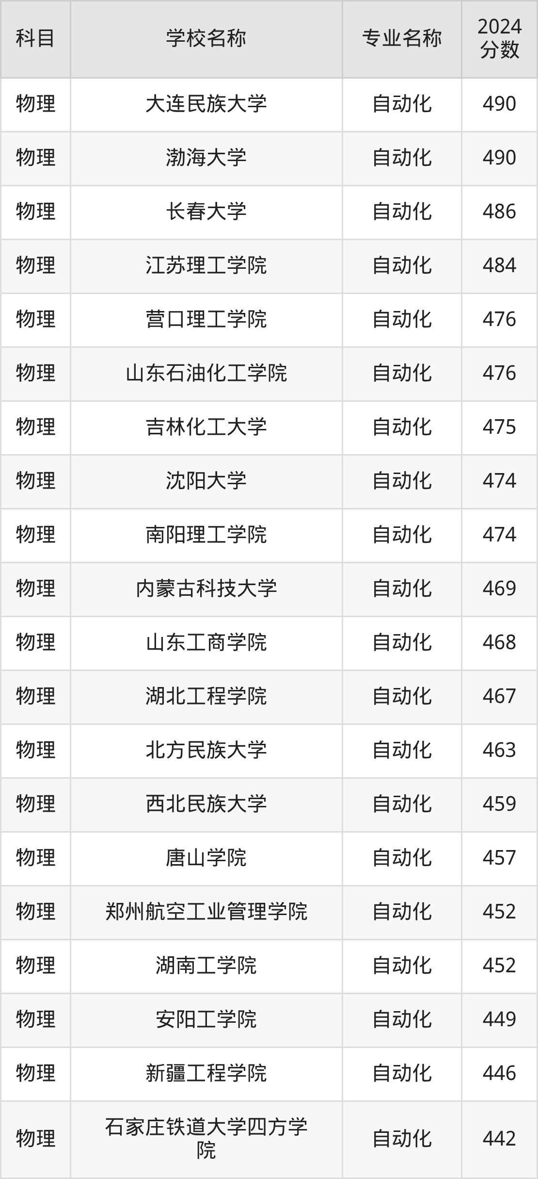 | 齐齐哈尔大学 | 自动化 | 458 |