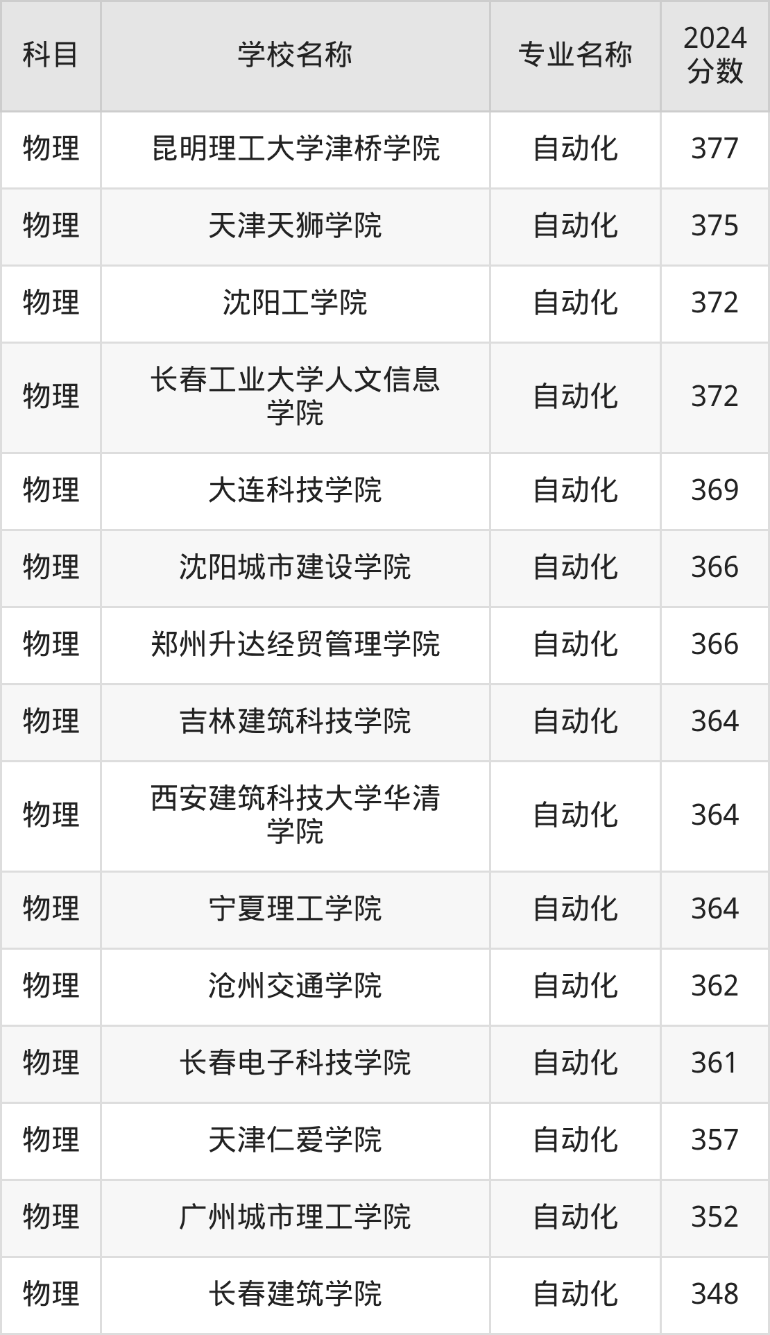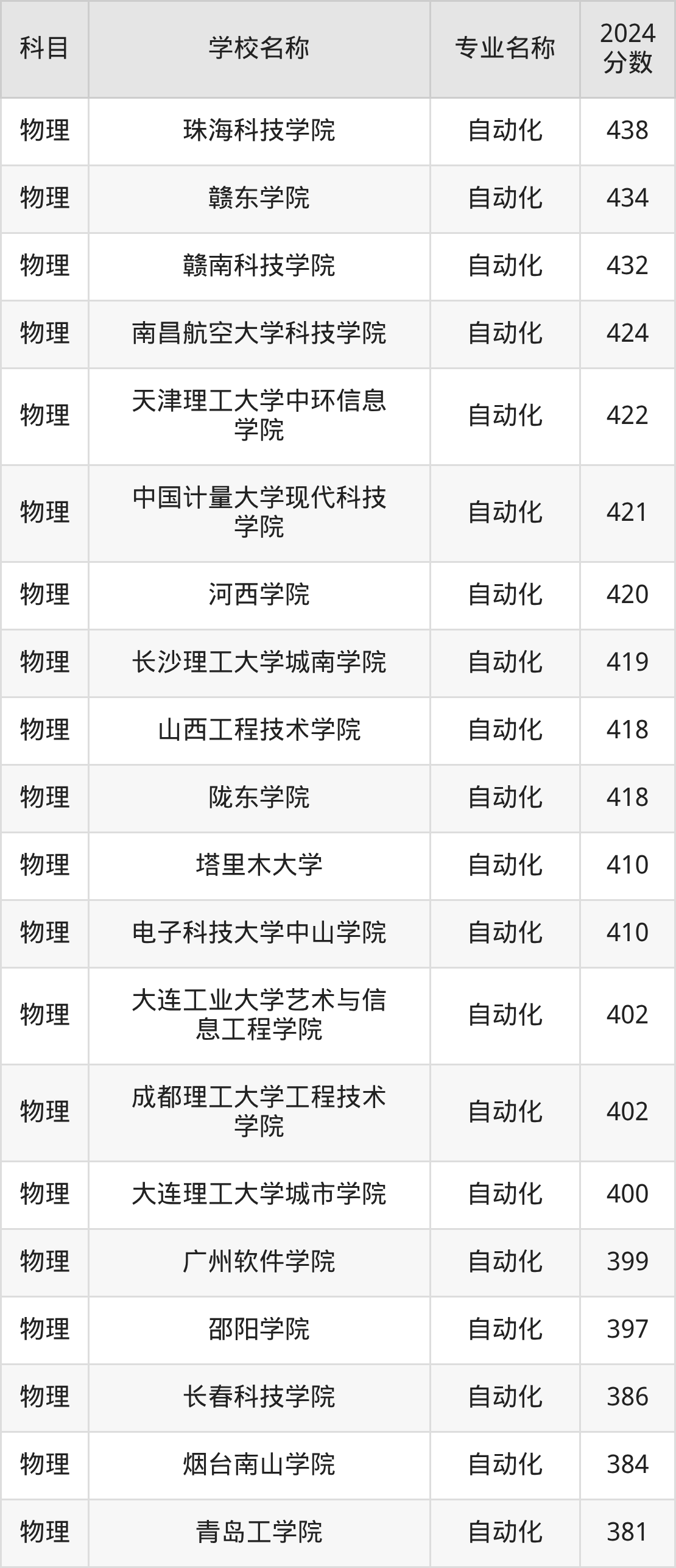 | 哈尔滨华德学院 | 自动化 | 376 |