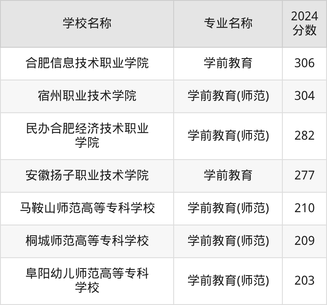 | 合肥幼儿师范高等专科 学校 | 学前教育(师范) | 416 |