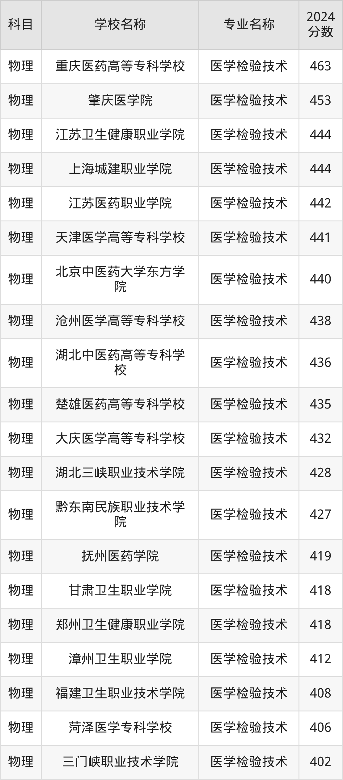 | 安庆医药高等专科学校 | 医学检验技术 | 430 |