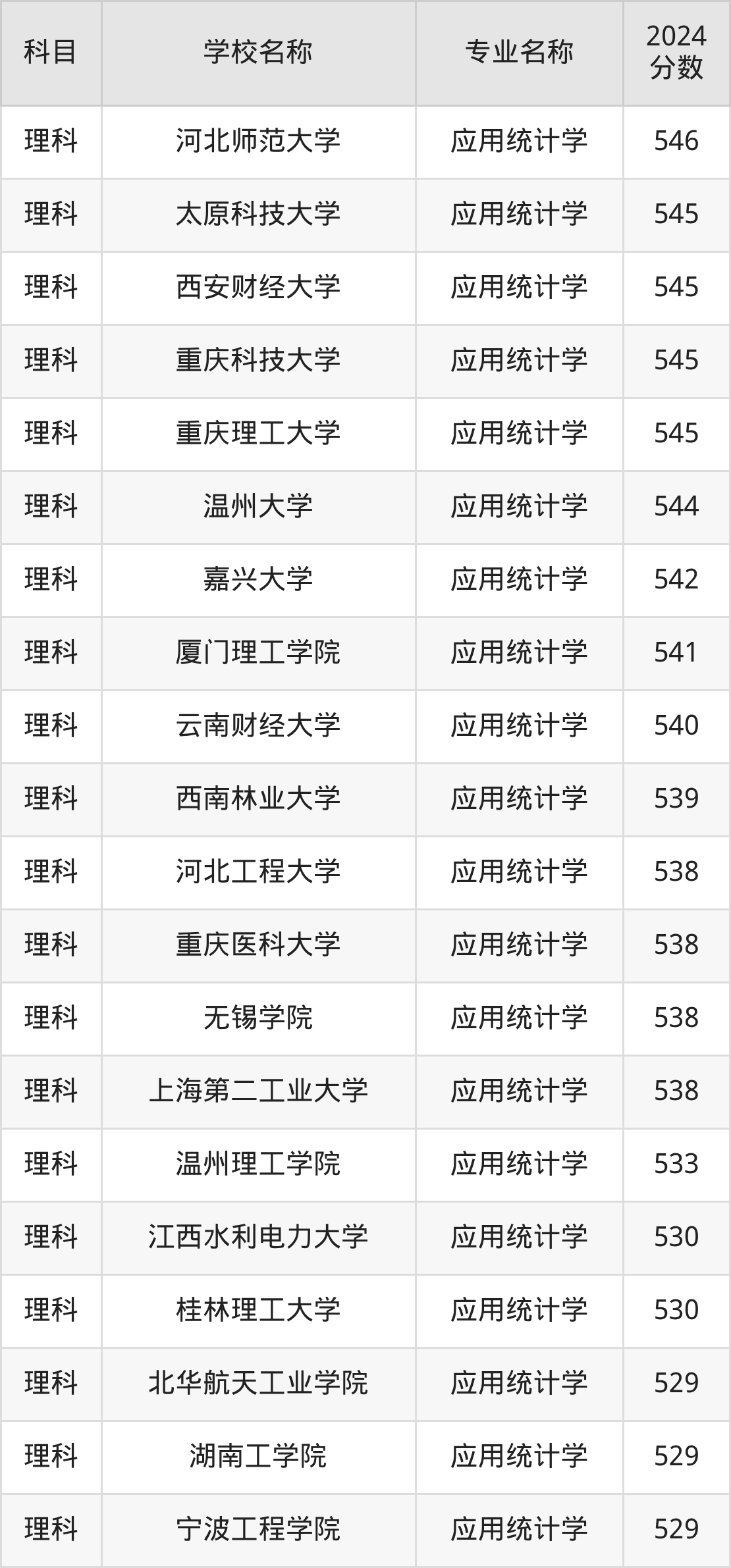 | 四川轻化工大学 | 应用统计学 | 538 |