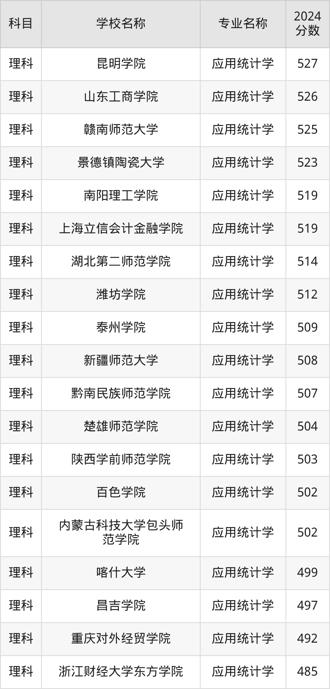 | 电子科技大学成都学院 | 应用统计学 | 493 |