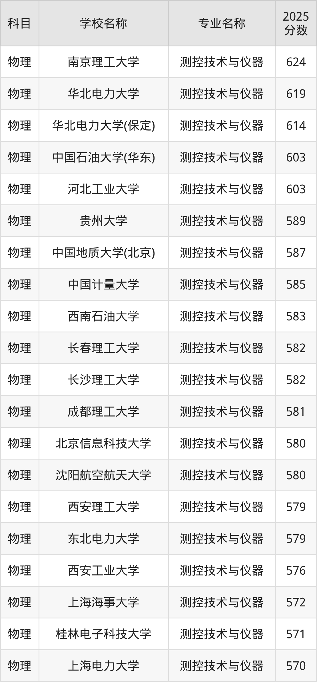 通过上文大家可以知晓,在山西省内招测控技术与仪器专业的院校数量较少,所以下文将为2026届高考生继续展示:省外大学的测控技术与仪器专业2025年在山西高考的录取情况,包含南京理工大学、华北电力大学、华北电力大学(保定)、中国石油大学(华东)、河北工业大学。