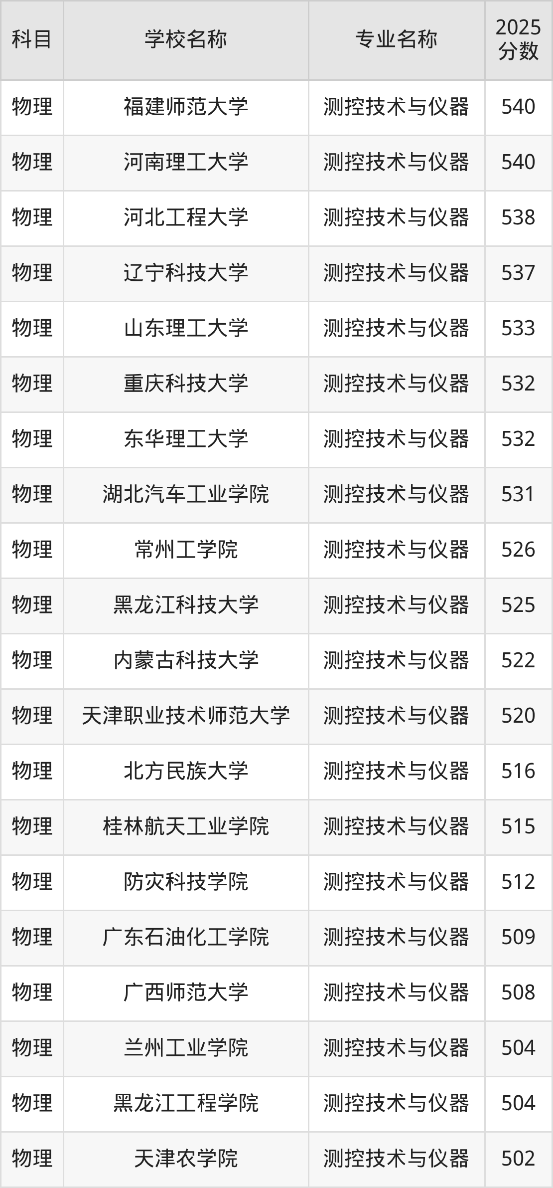 圆梦小编根据山西2025年高考物理组专业分,将开设了测控技术与仪器专业且位于山西省内的大学按照“录取分”从高到低排序,得出了以上榜单。