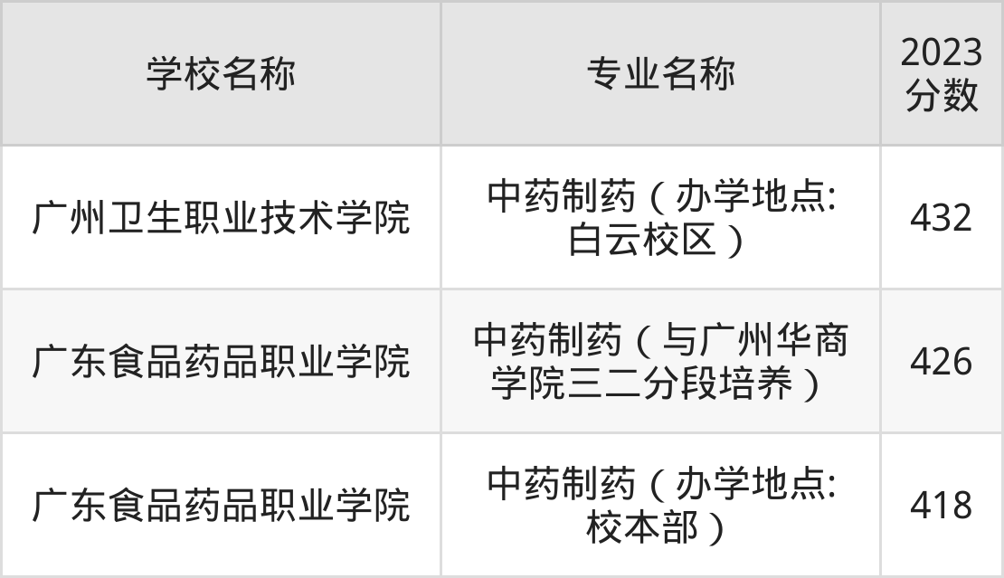 | 广东食品药品职业学院 | 中药制药(办学 地点:校本部) | 409 |