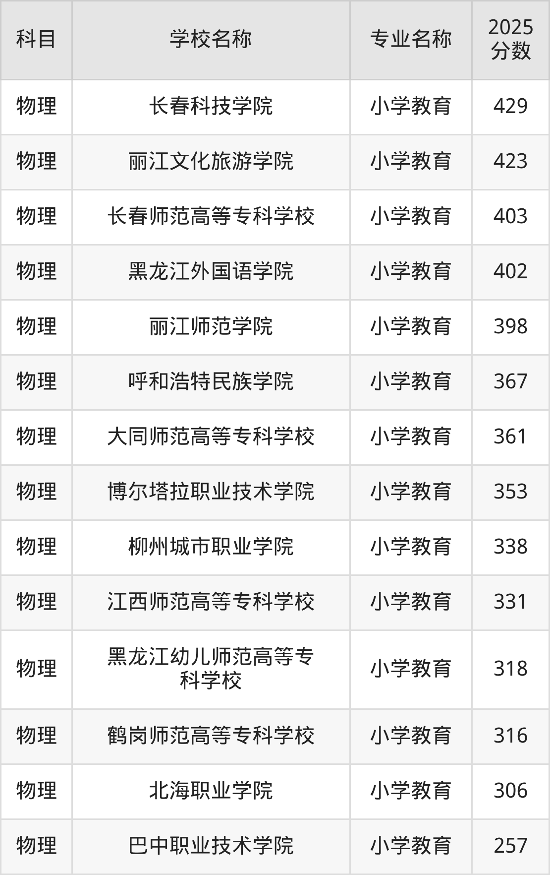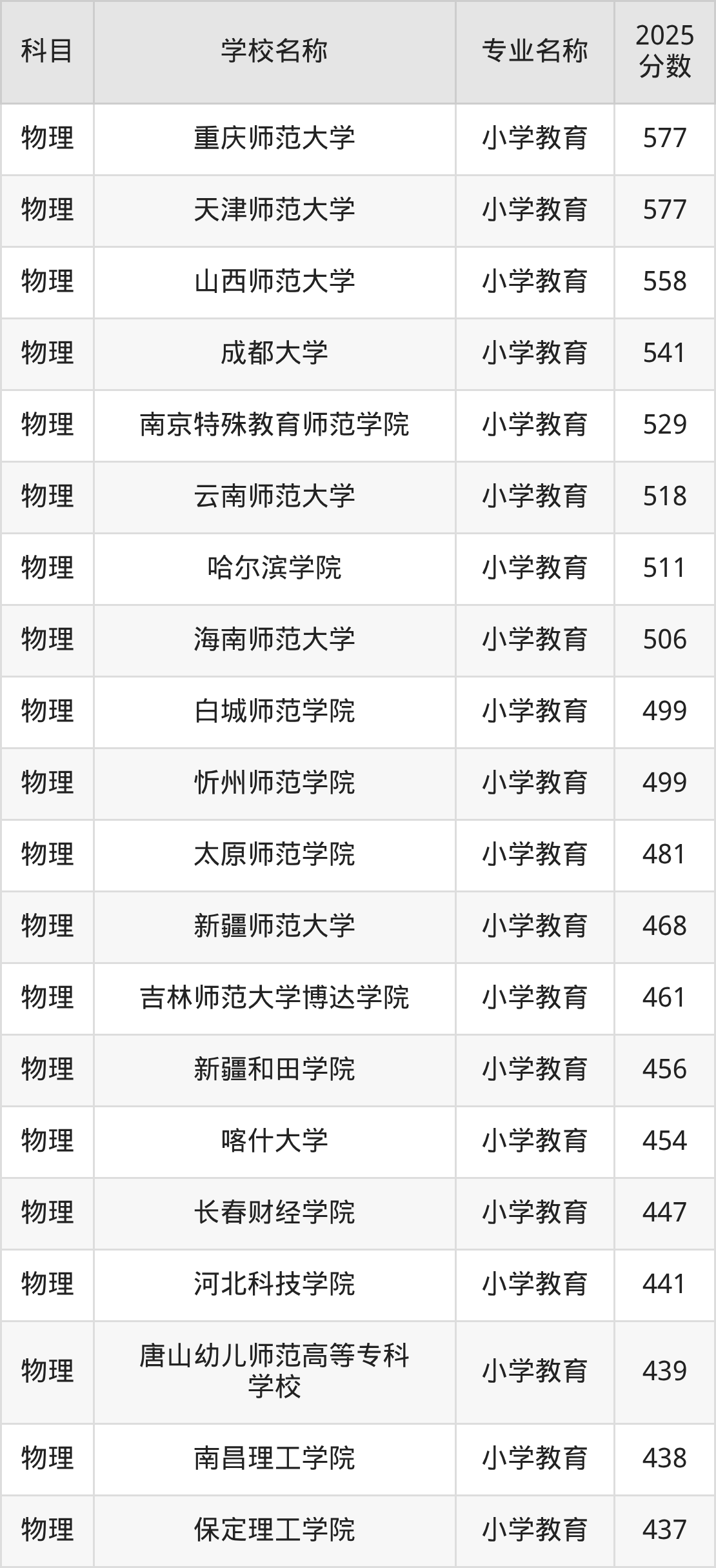 | 学校名称 | 专业名称 | 2025 分数 |